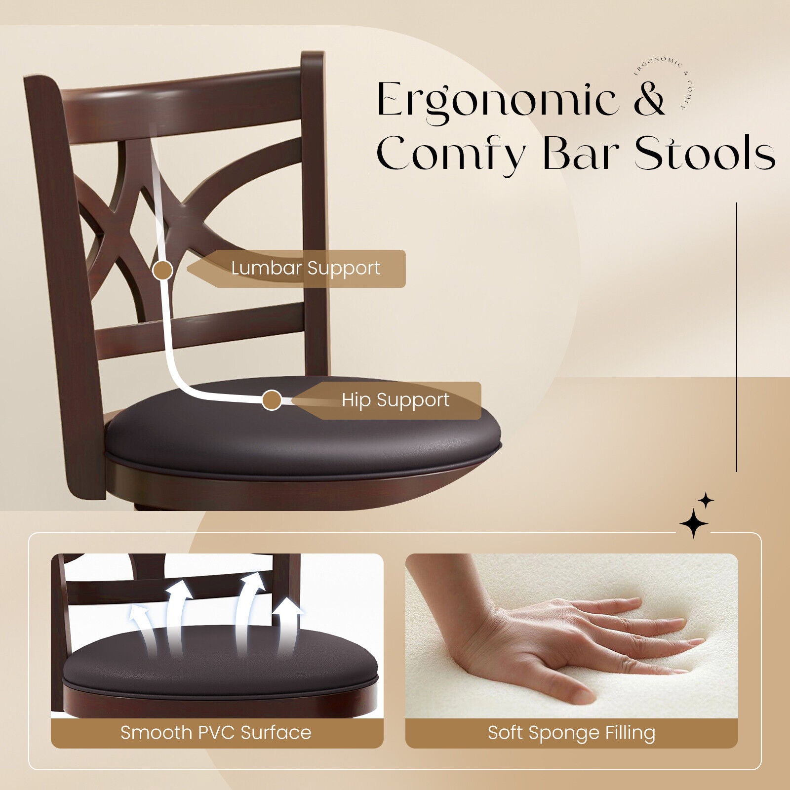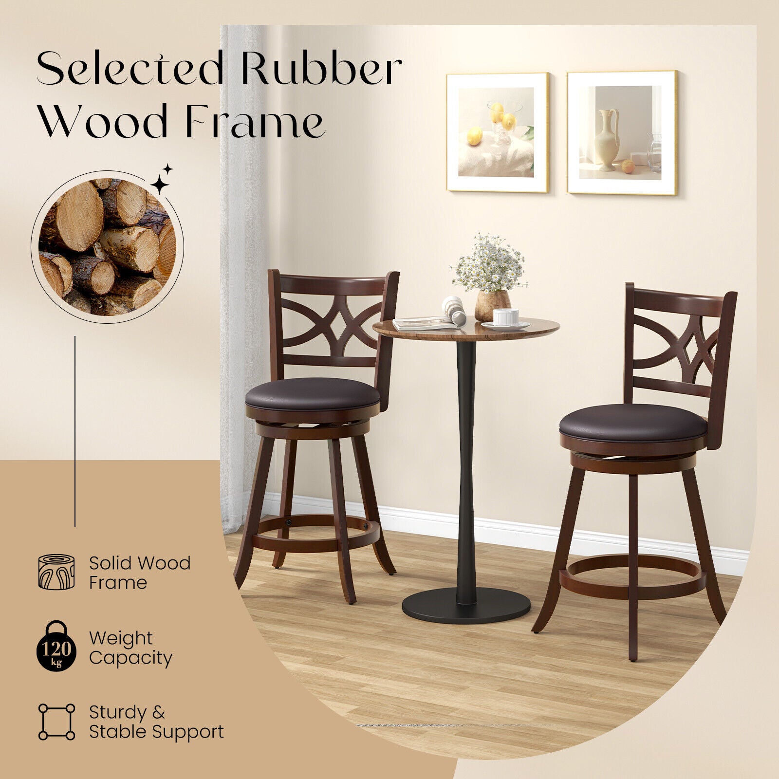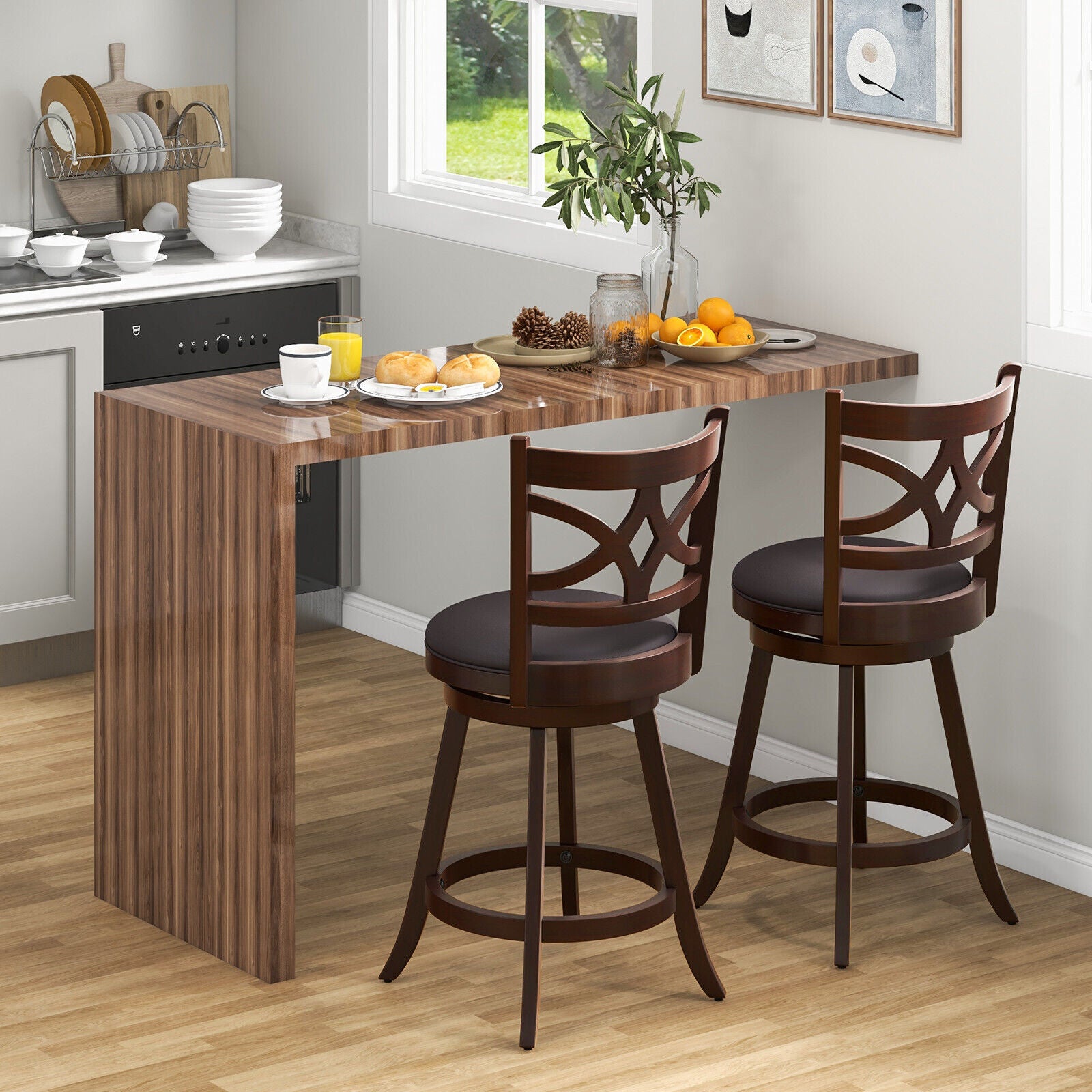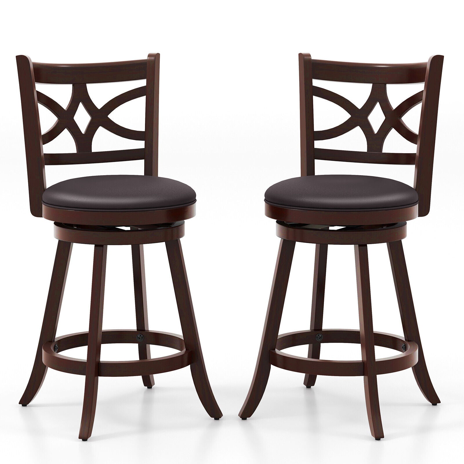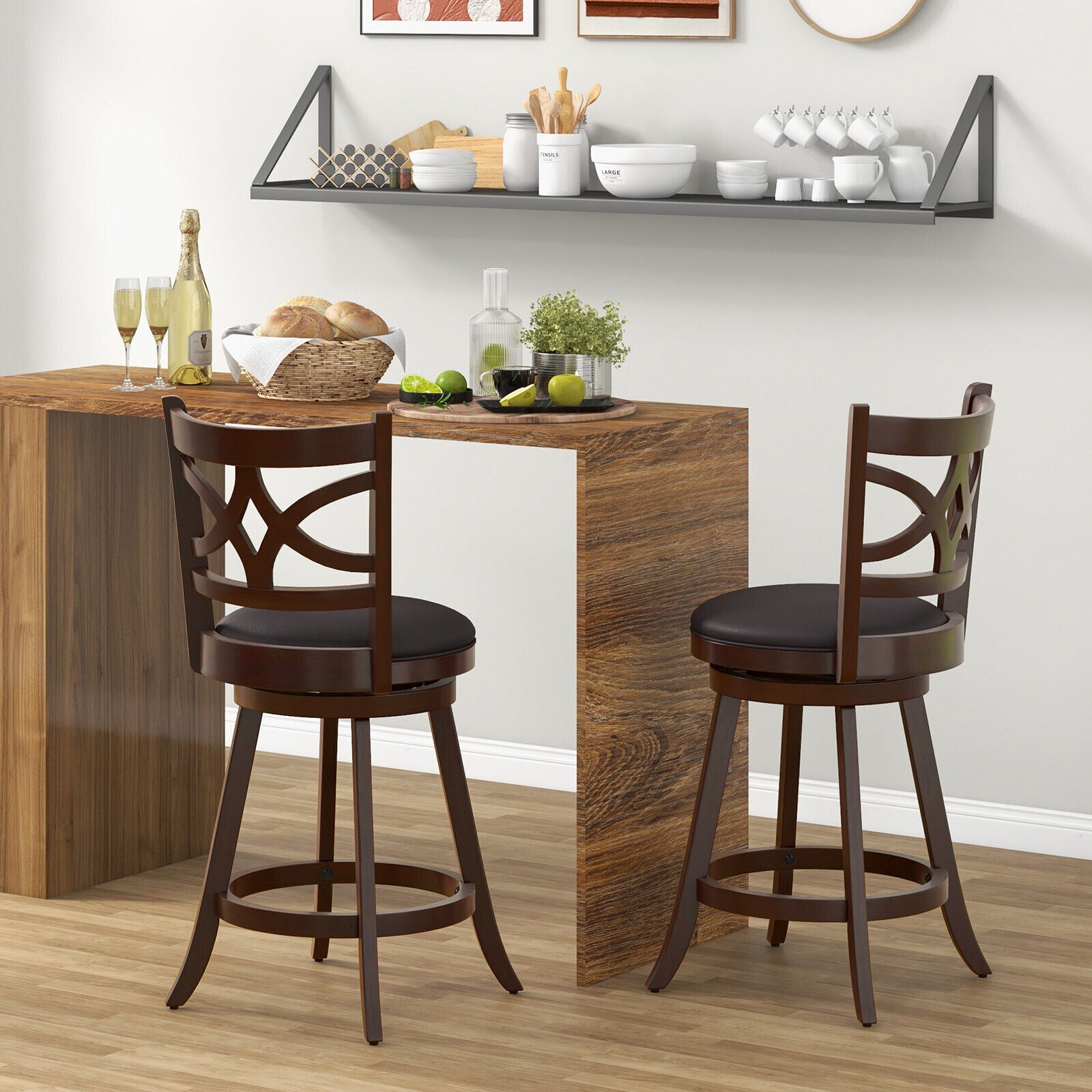 2Pcs Bar Stools Swivel Counter Height Bar Pub Stools Set w/Cushioned Seat 24"