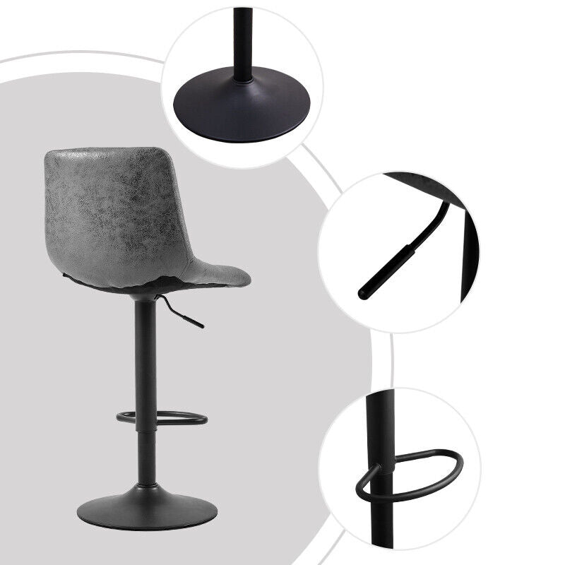2Pcs Barstools Grey Faux Leather Gas Lift Rotatable Metal Leg Bar Chairs Kitchen