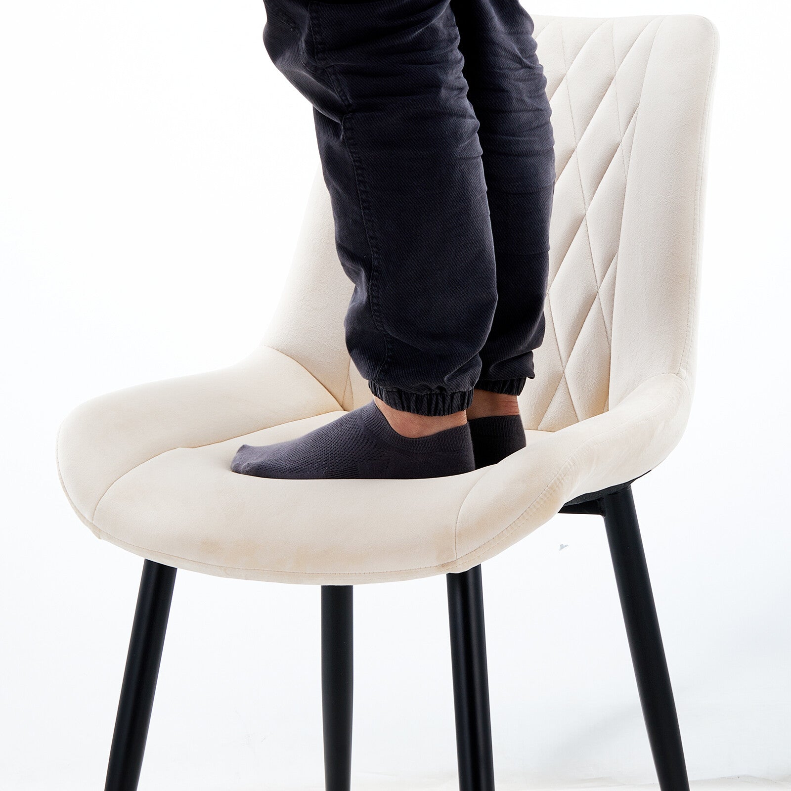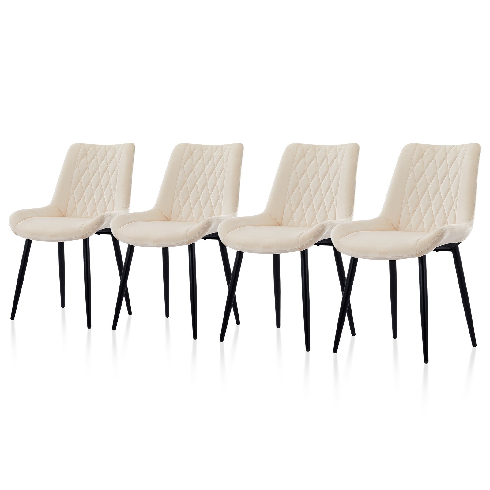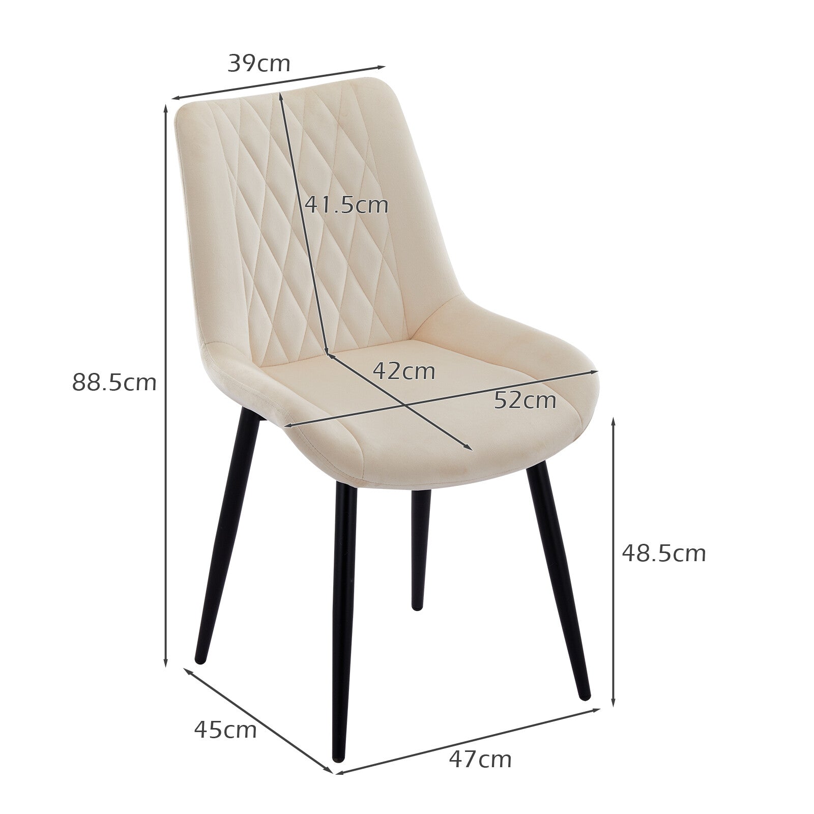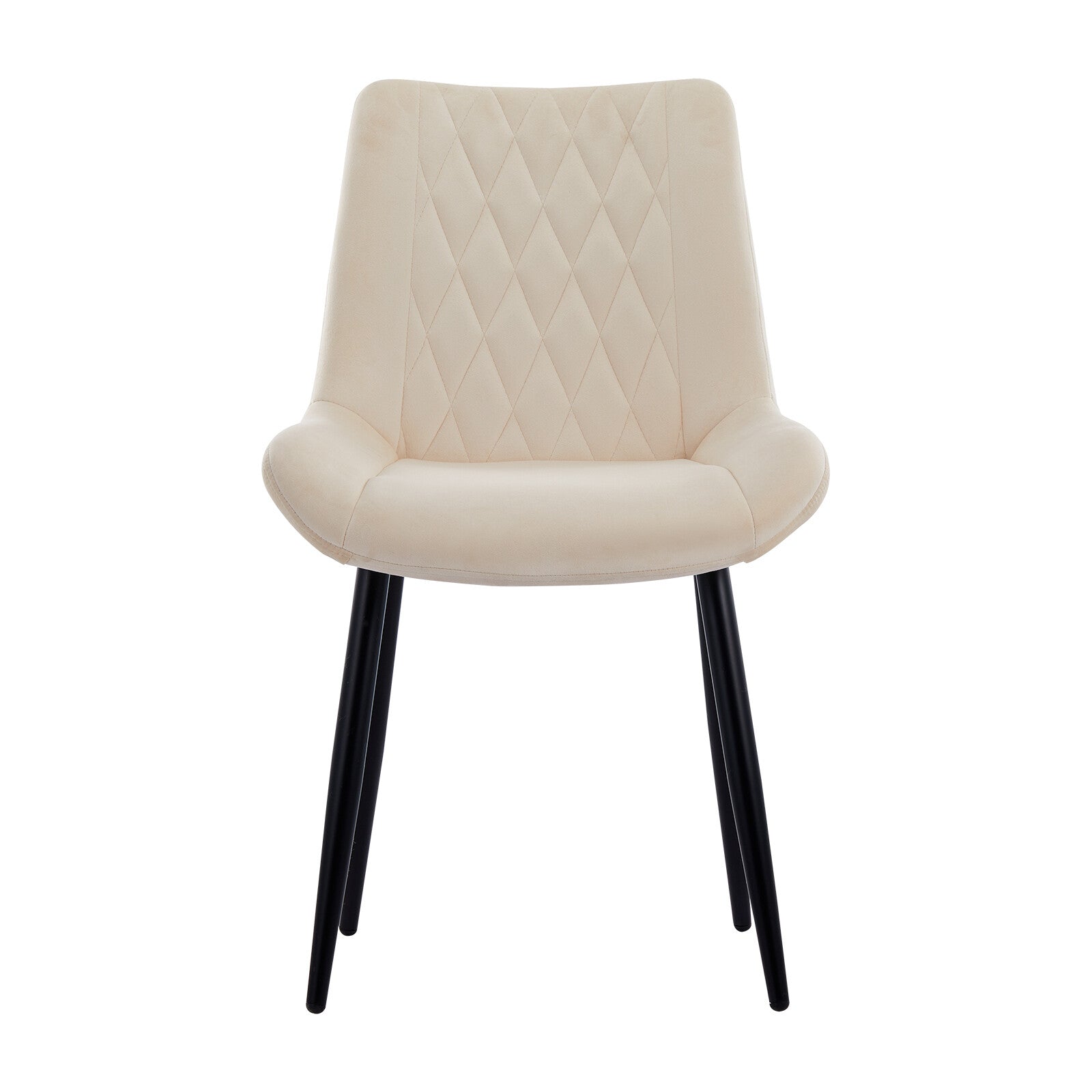 2pcs Beige Dining Chairs Set Velvet Diamond Back Padded Seat Restaurant Chair