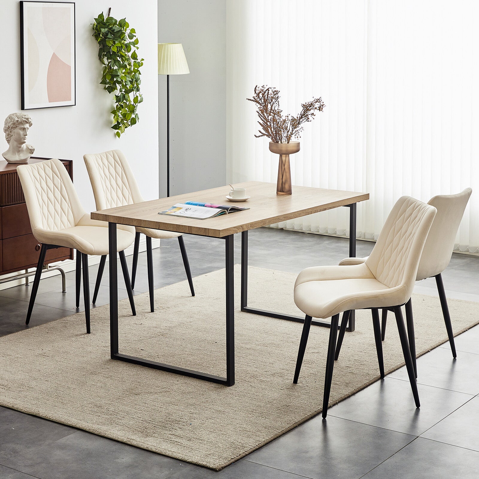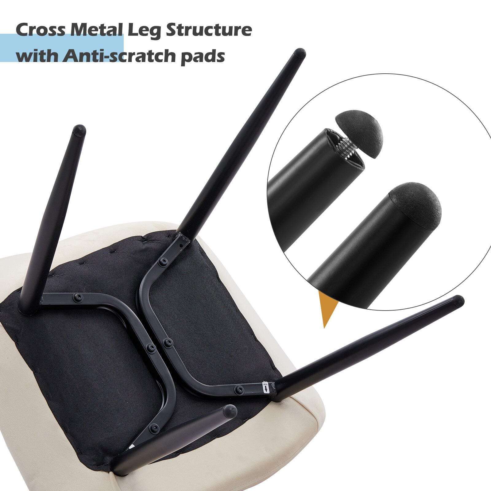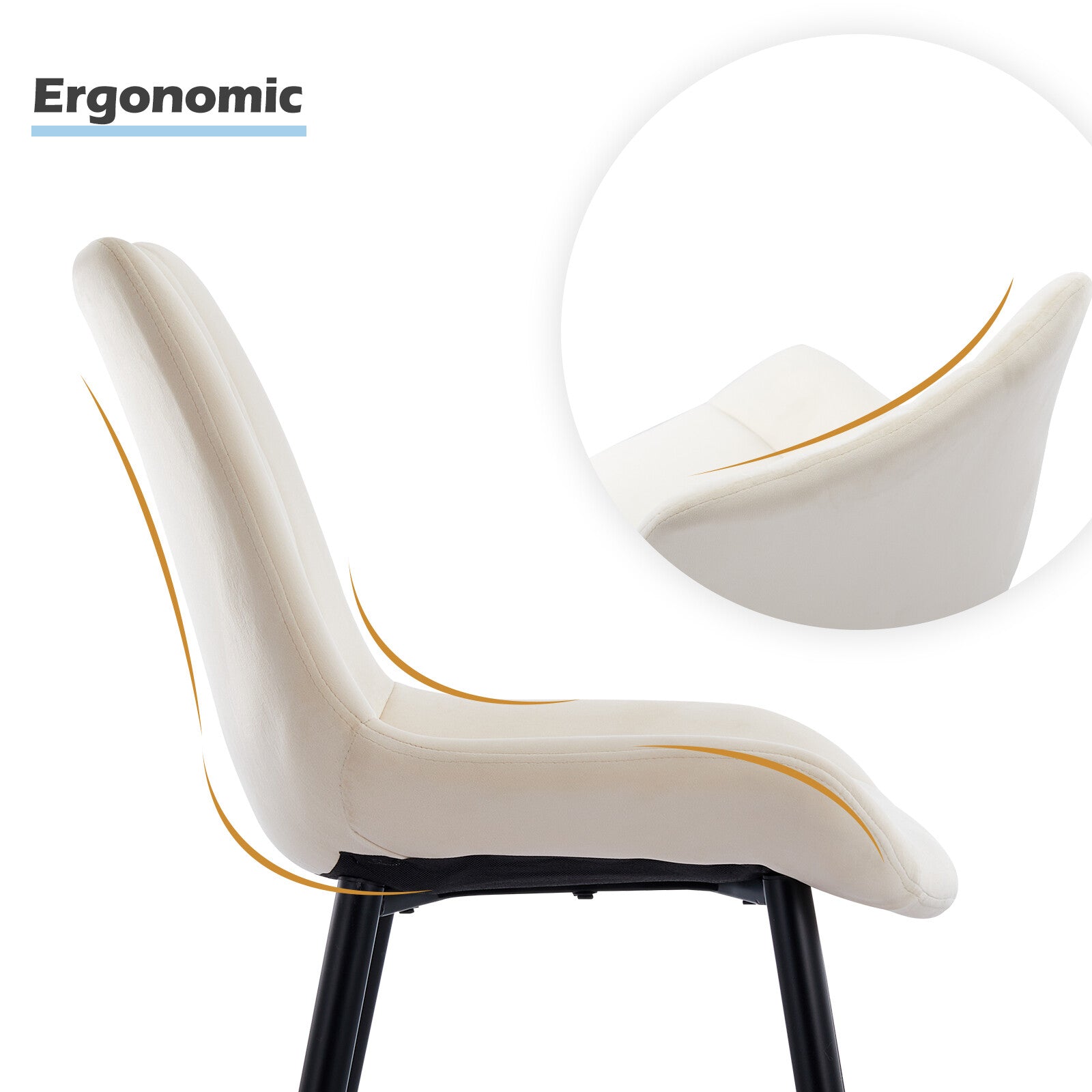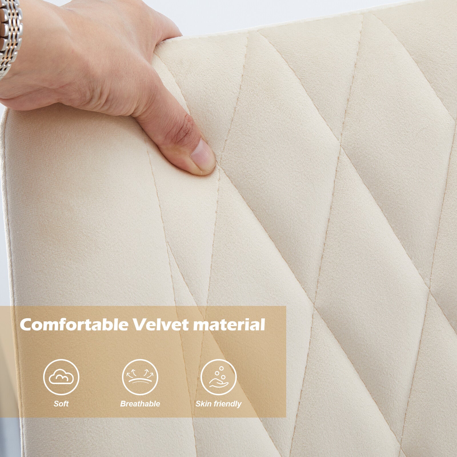 2pcs Beige Dining Chairs Set Velvet Diamond Back Padded Seat Restaurant Chair