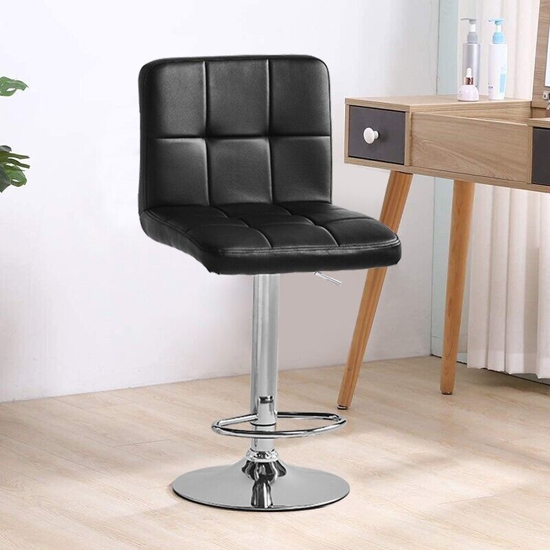 2Pcs Black Barstools Faux Leather Gas Lift Bar Chair Height Adjustable Modern