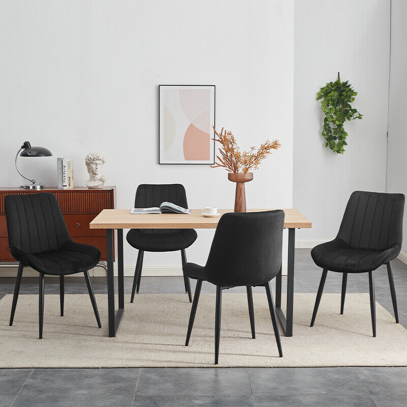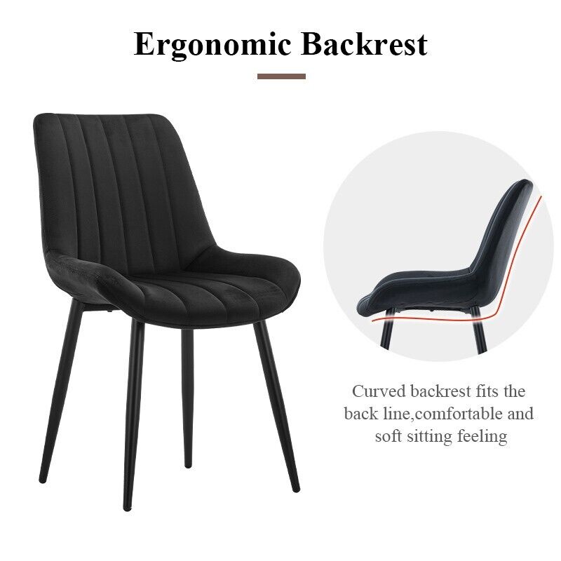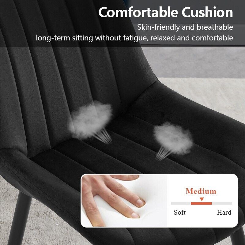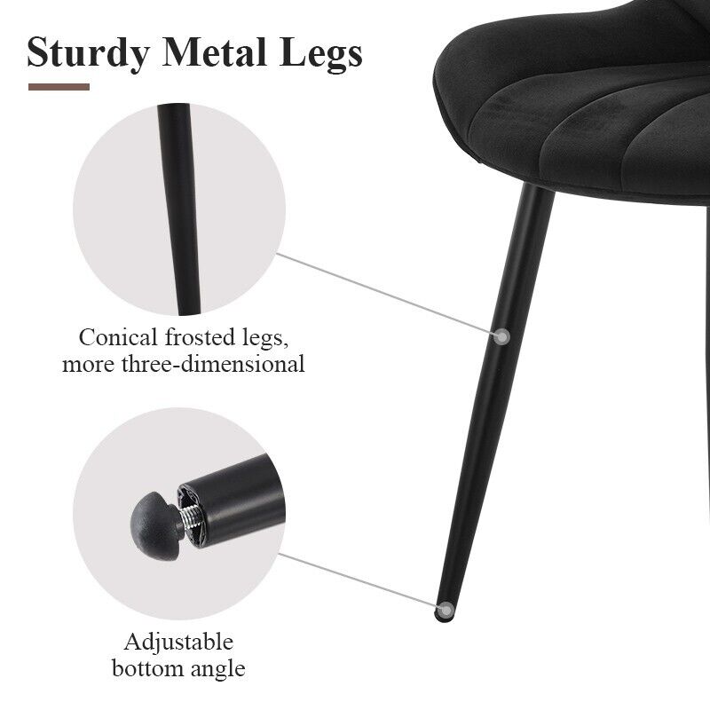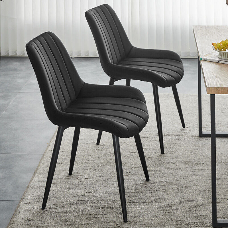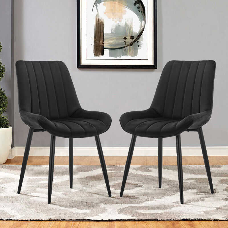 2pcs Black Velvet Dining Chairs Set Padded Seat Back Restaurant Chair