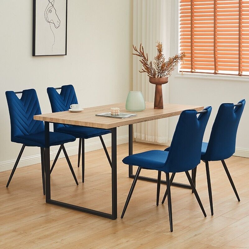 2pcs Blue Dining Chairs Velvet Padded Seat Restaurant Chair w/ Handle Modern