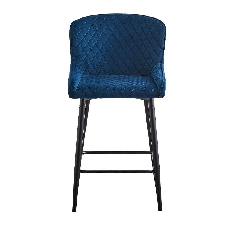 2pcs Blue Velvet Bar Stools Diamond Seat Metal Legs Kitchen Pub Chairs Stools