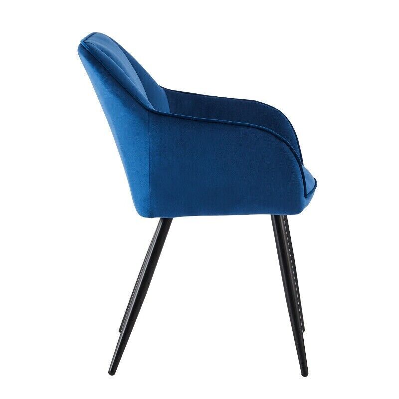 2pcs Blue Velvet Dining Chairs Set Padded Seat Metal Legs Kitchen Furniture
