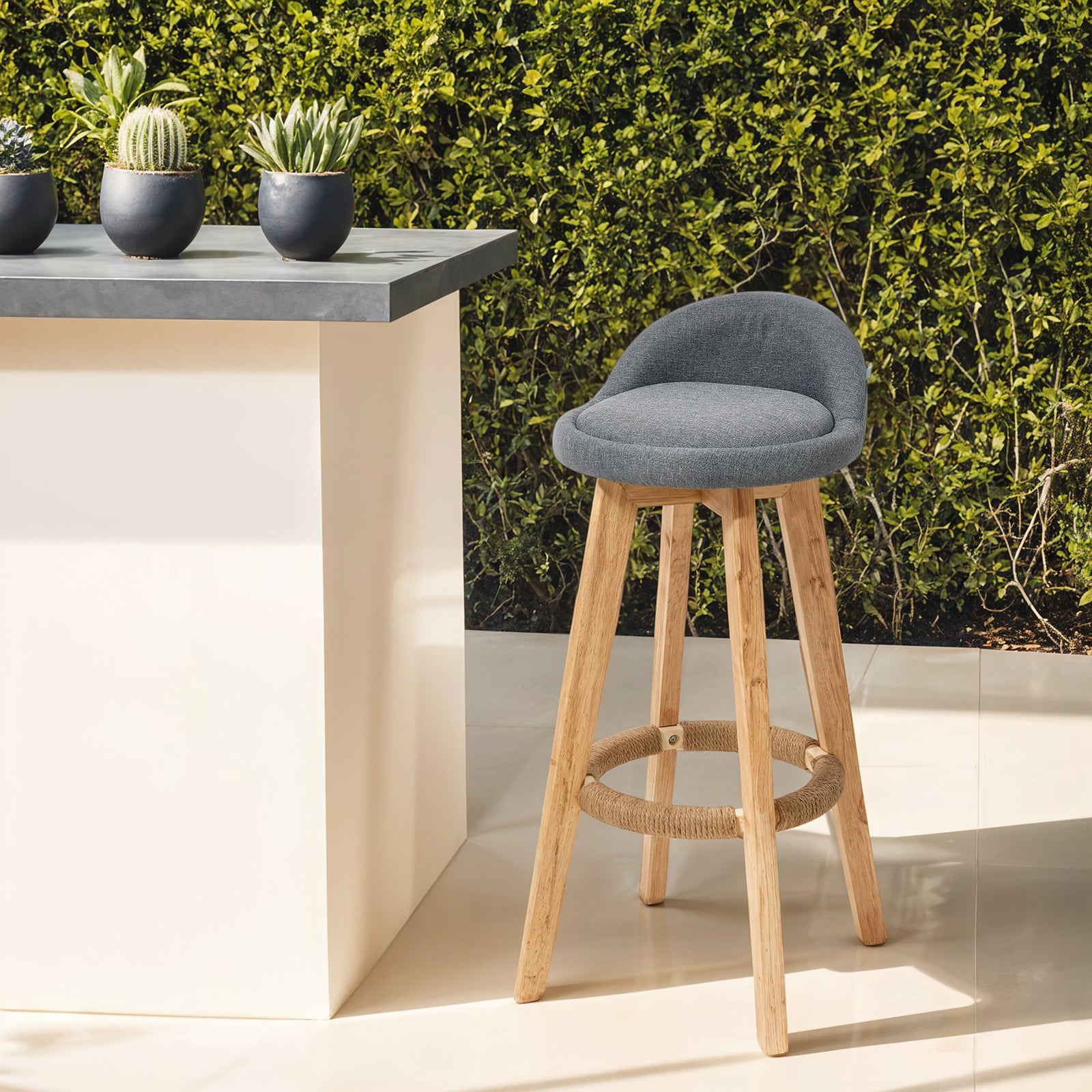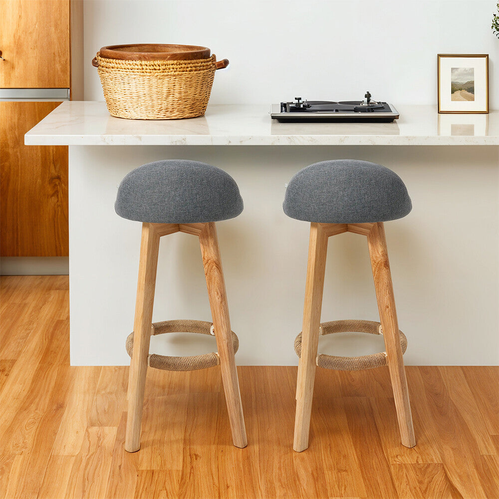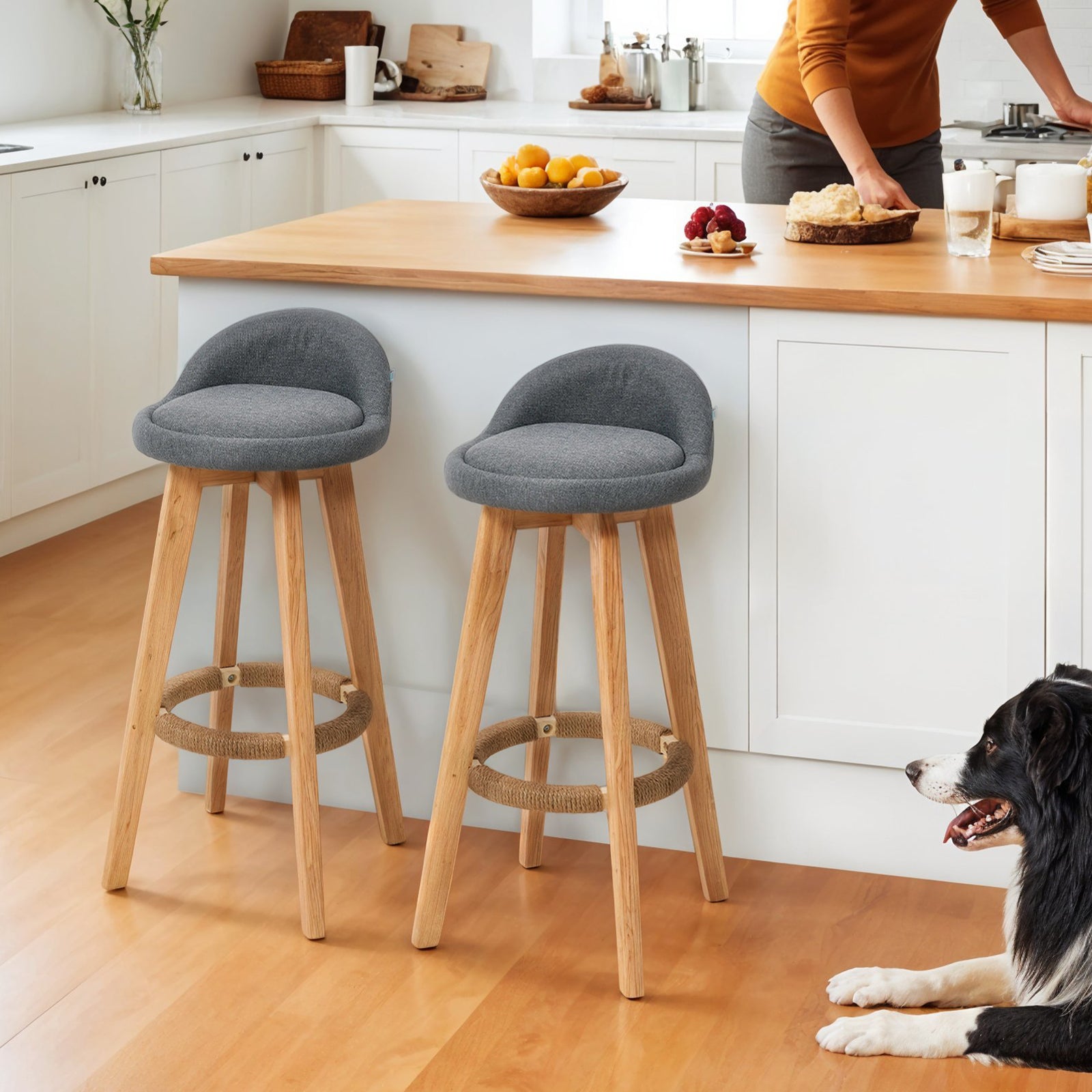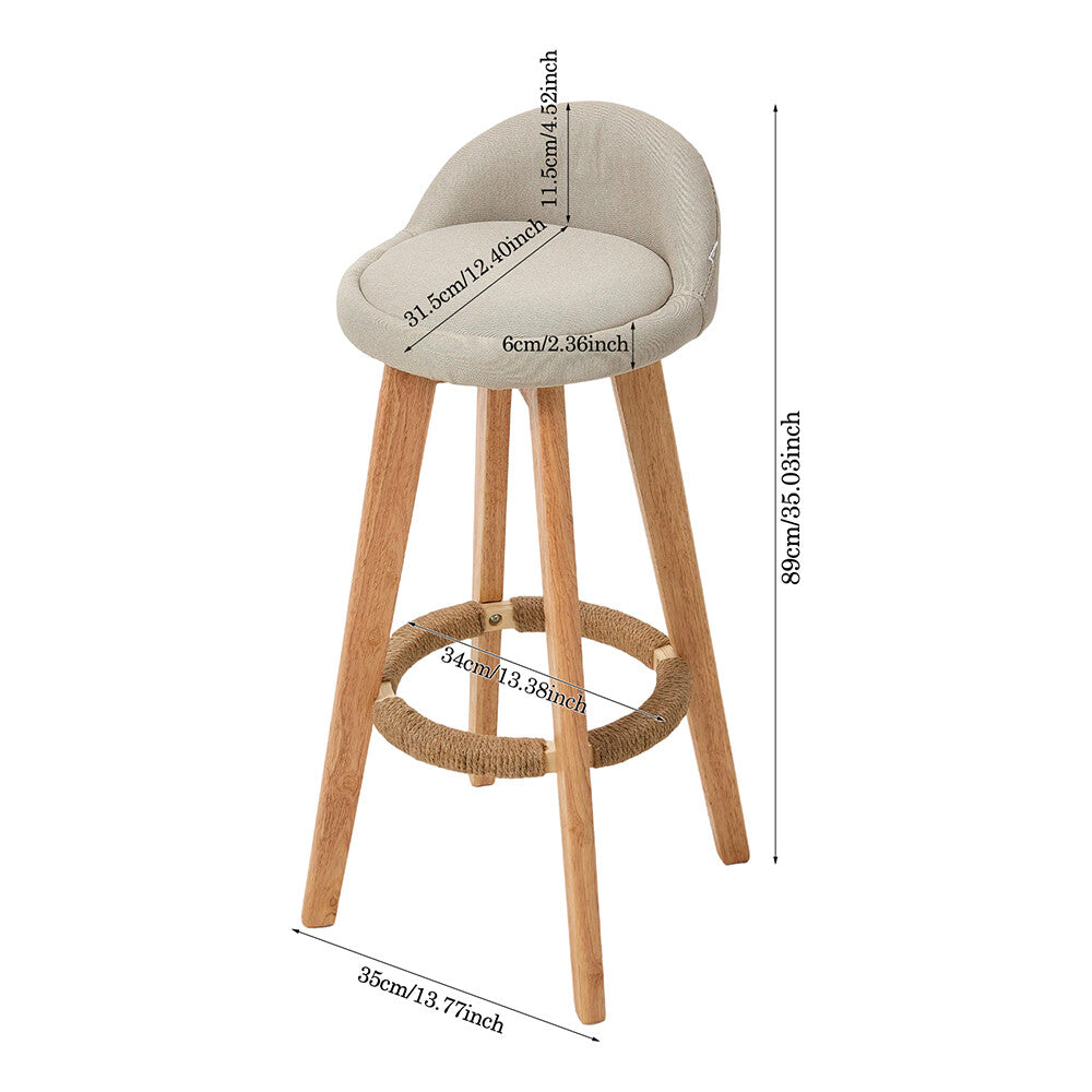 2pcs Breakfast Bar Stools Low Back Linen Padded High Chair Wooden Legs Barstool