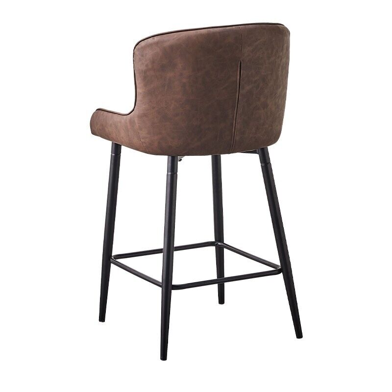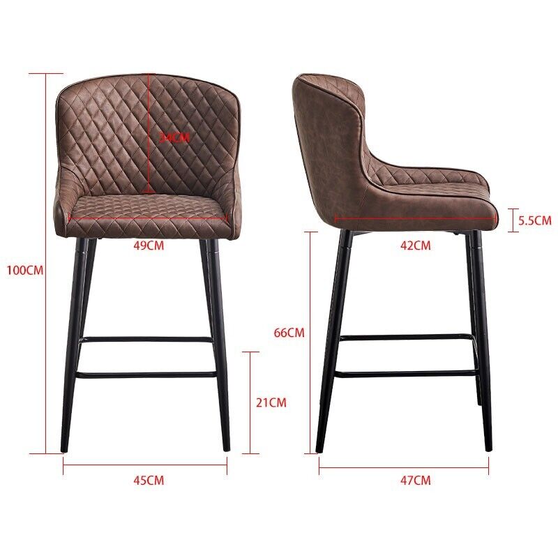 2pcs Brown Bar Stools Faux Leather Diamond Seat Breakfast Stool Kitchen