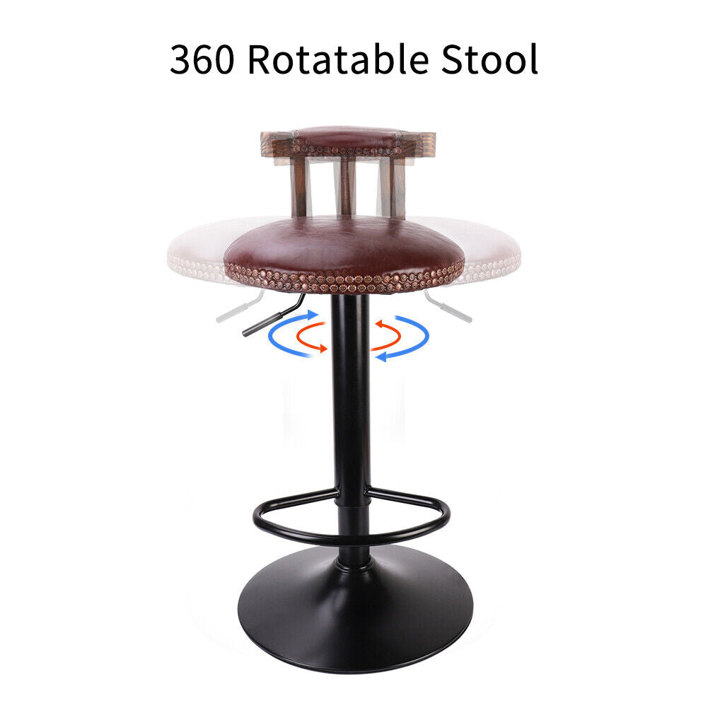 2PCS Brown Bar Stools Wooden Swivel High Leg Lifting Barstools Pub Cafe Dining