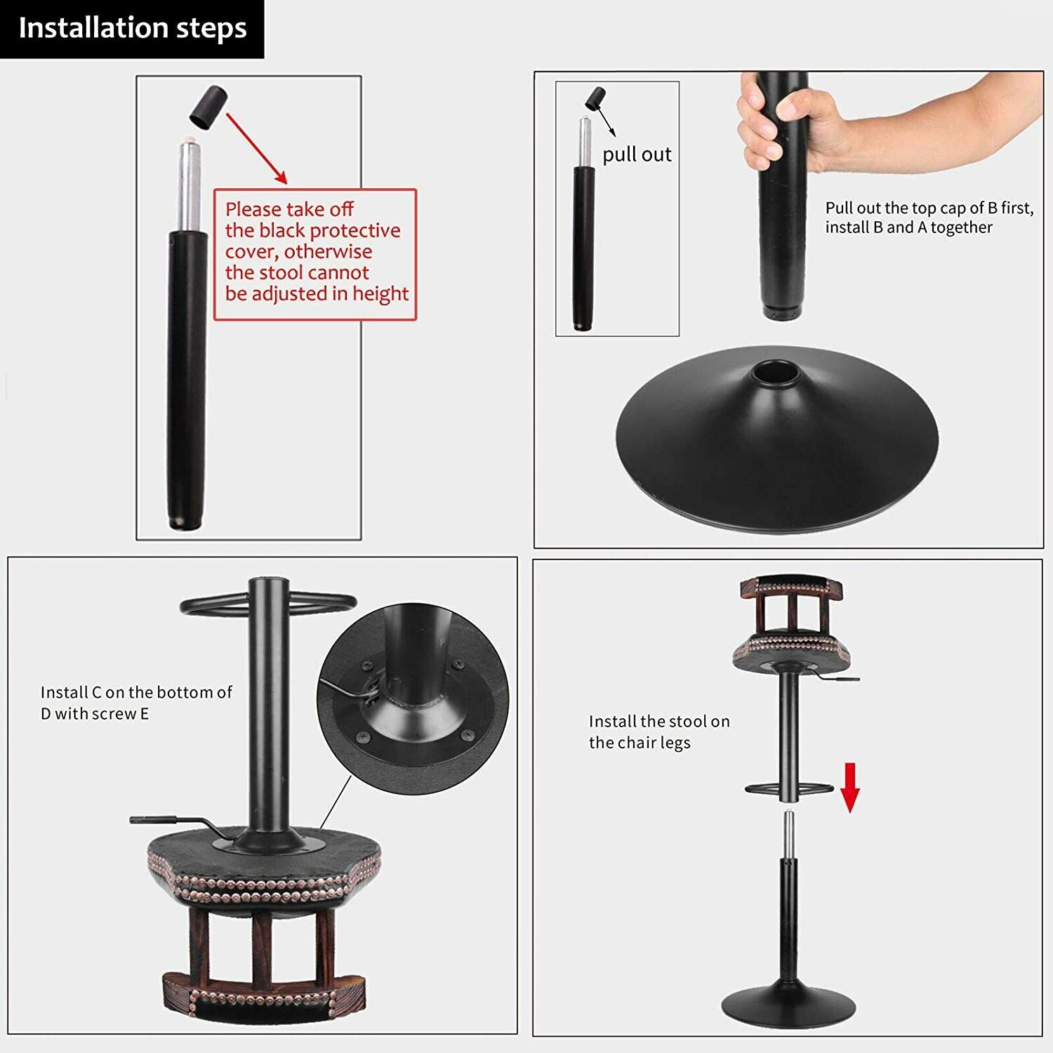 Adjustable, witn Back, 360 Rotatable, Adjustable Height