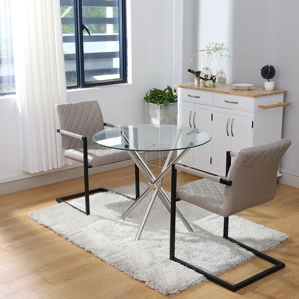 2pcs Cantilever Dining Chair Industrial Faux Leather Padded Home Office Chair