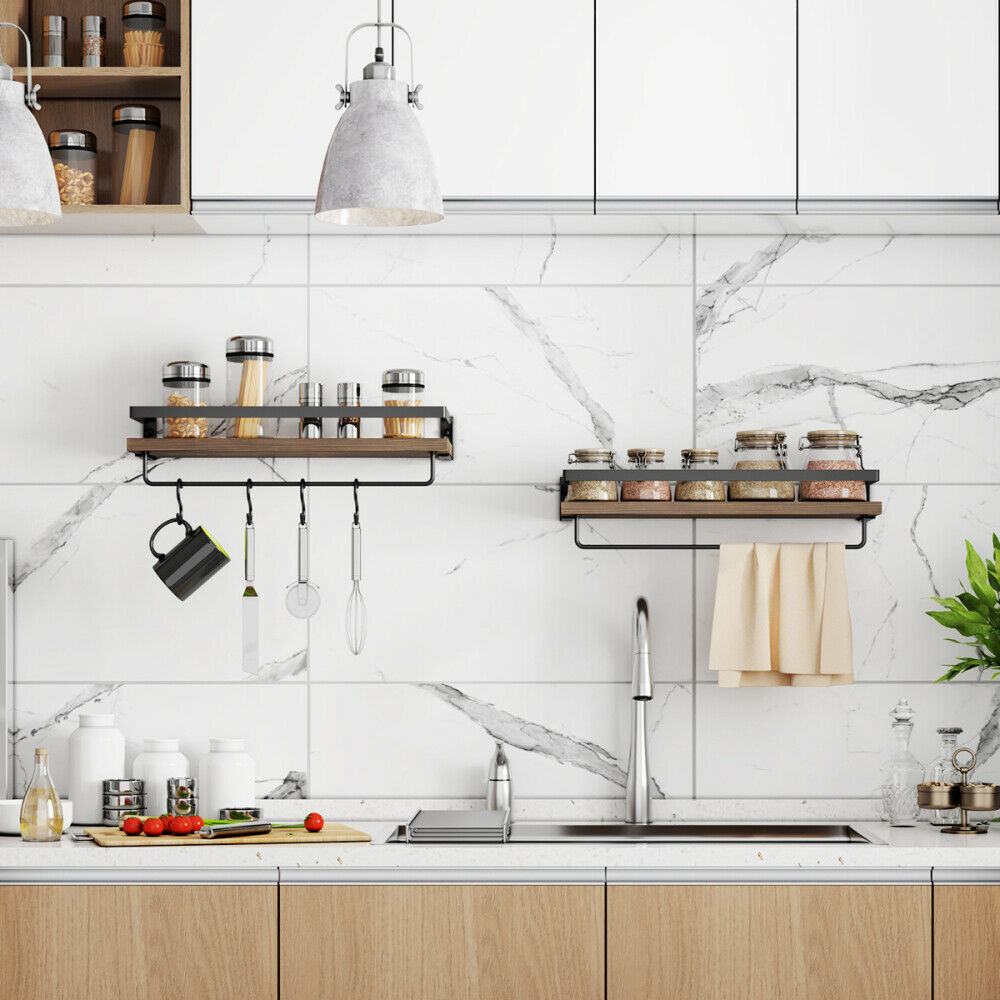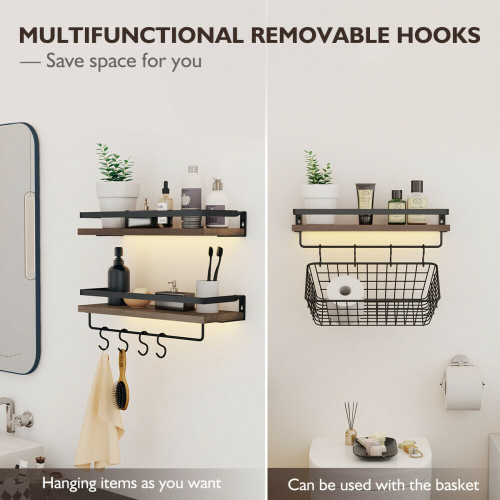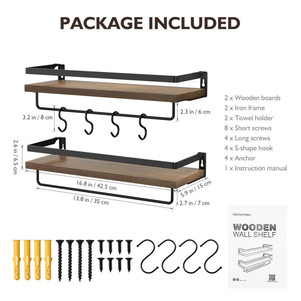 2Pcs Corner Wall Shelves Industrial Style Metal Wood Shelving Shelf Storage Hook