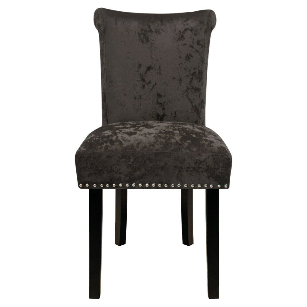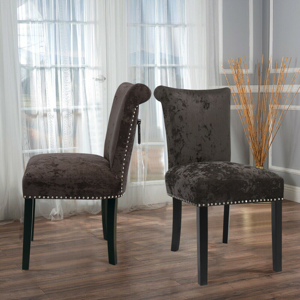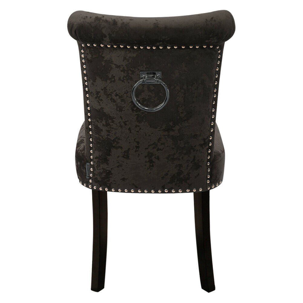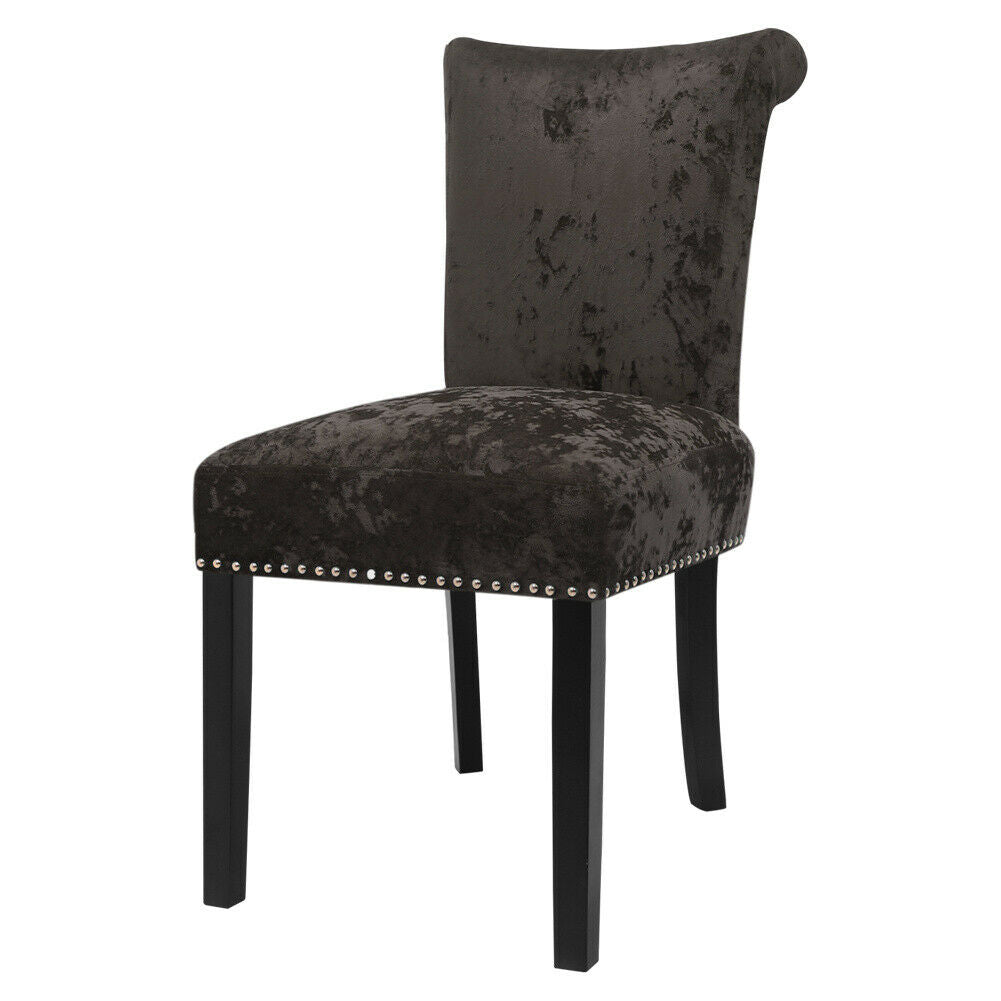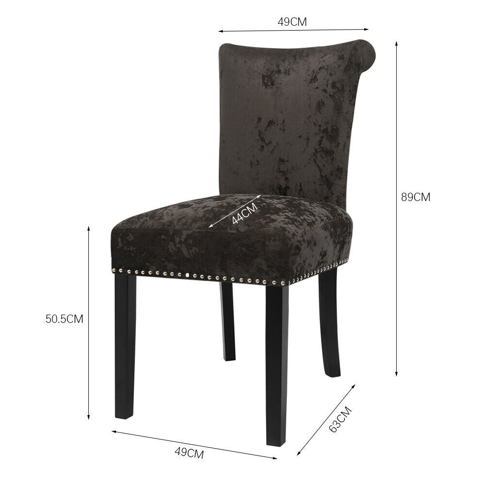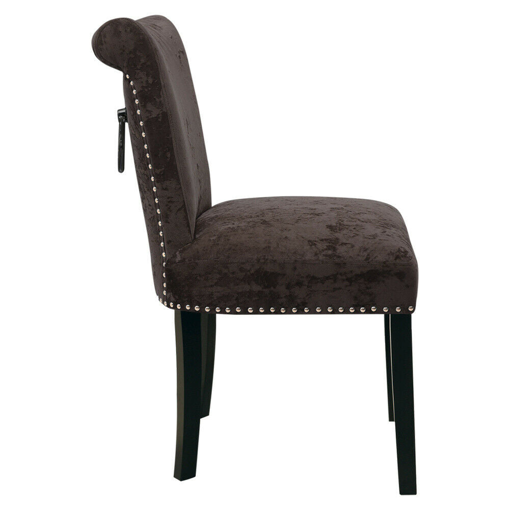 2PCS Crushed Velvet Brown Dining Chairs with Knocker/Ring Back Kitchen Furniture