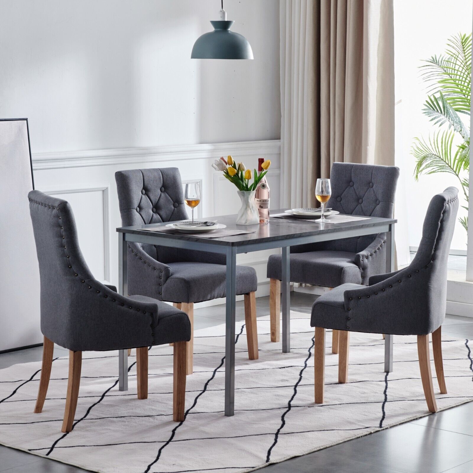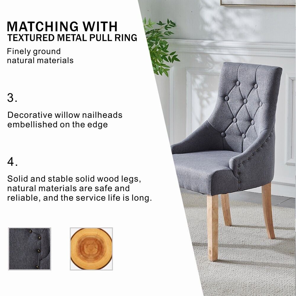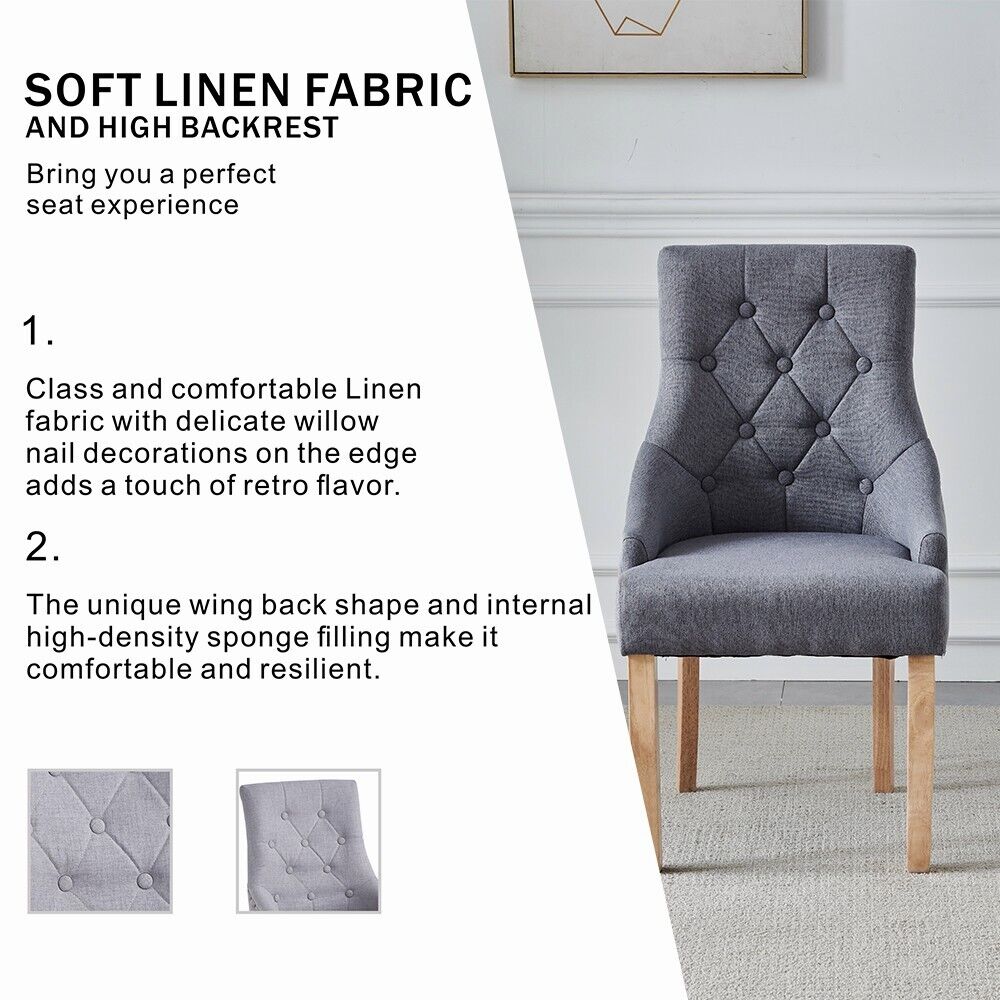 2pcs Dark Grey Fabric Dining Chairs Button-Tufted Upholstered Solid Wood Legs