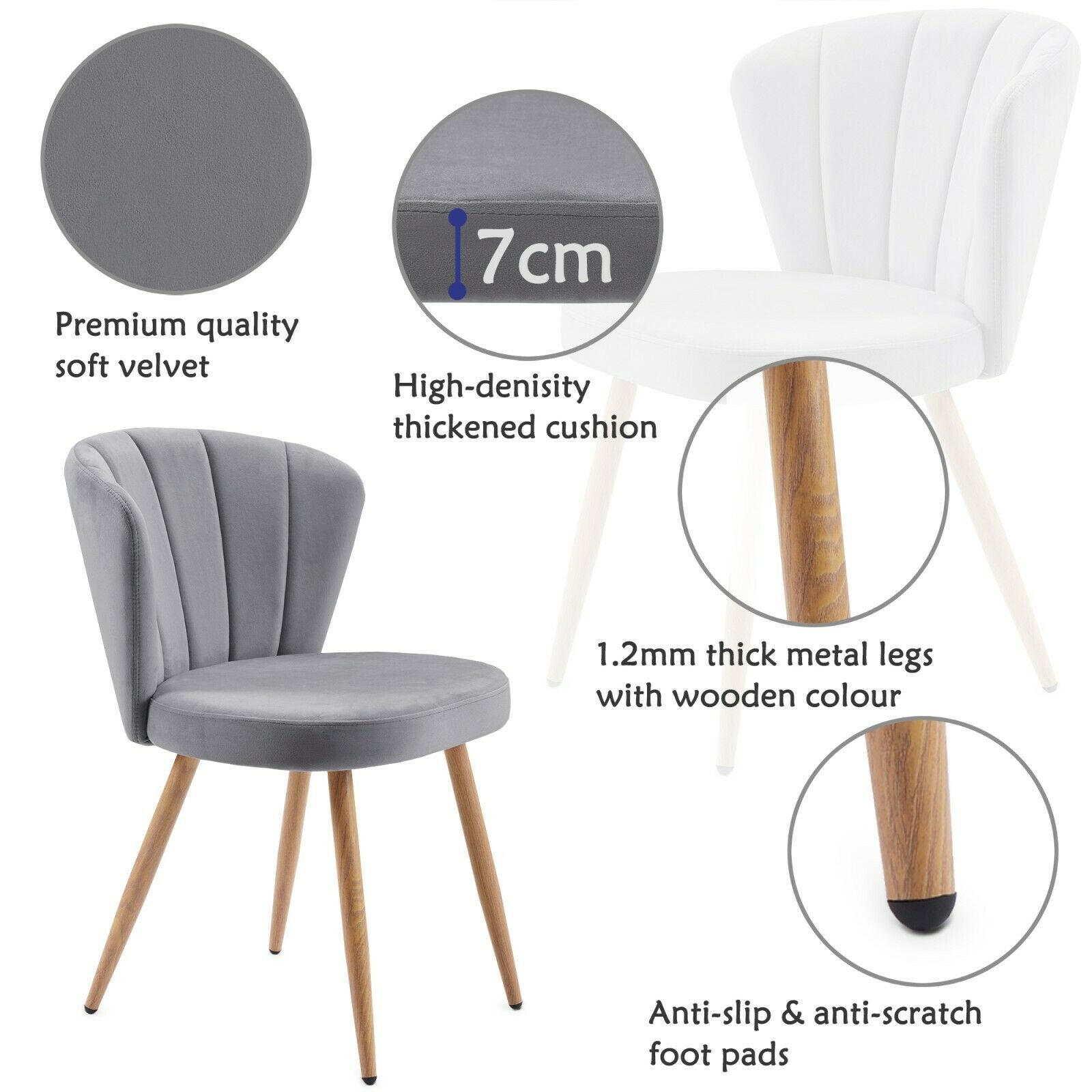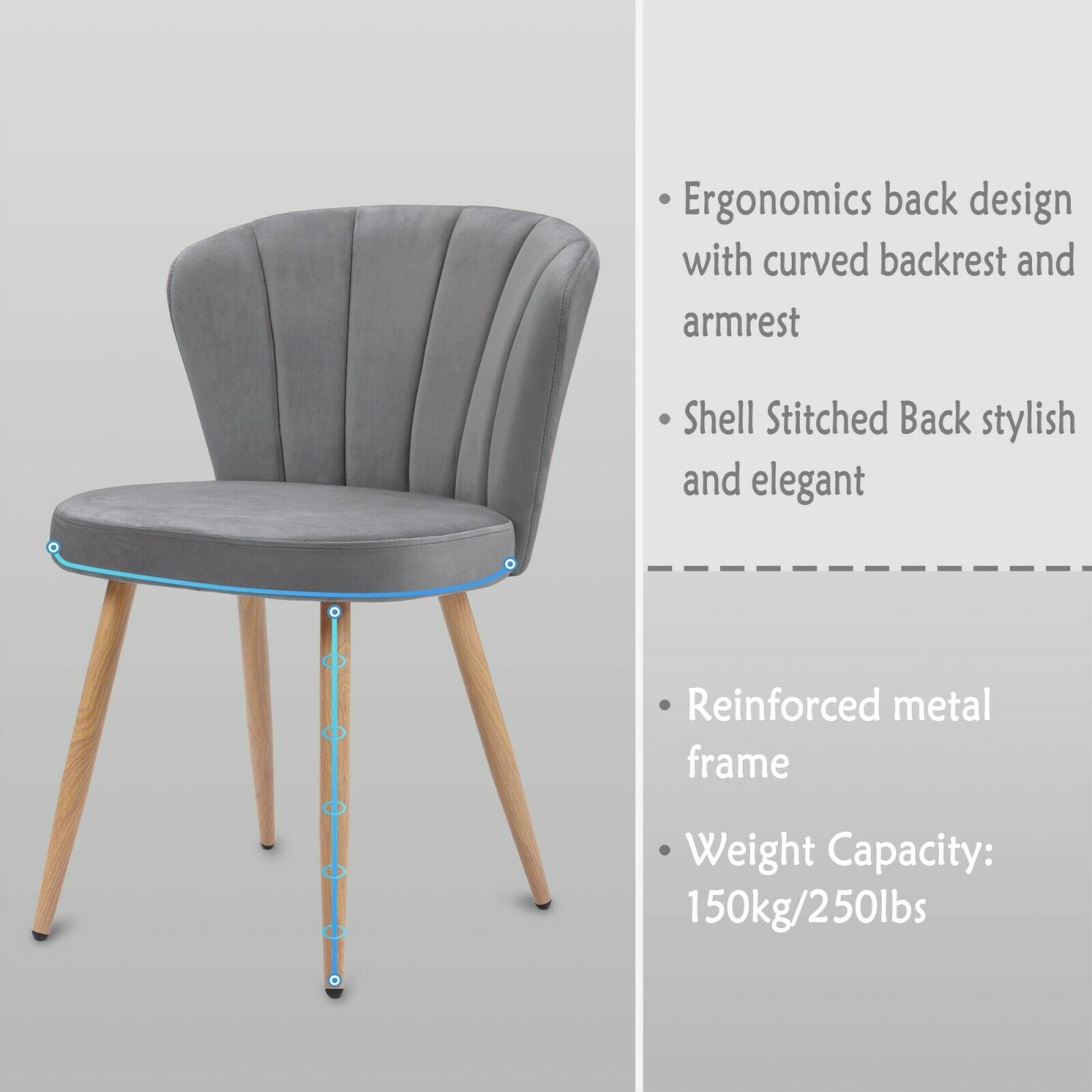 2pcs Dining Chair Velvet Fabric Armchair Shell Stitched Back Living Room Bedroom
