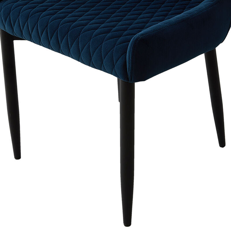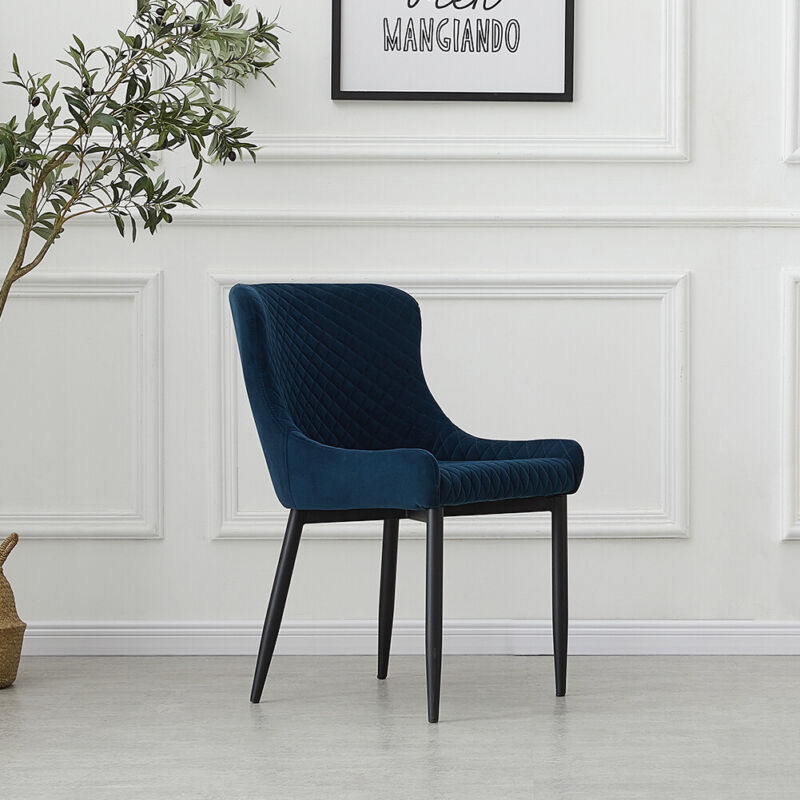 2pcs Dining Chair Velvet Soft Padded Diamond Backrest Metal Legs Armchair Blue