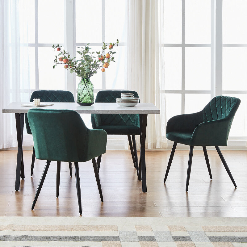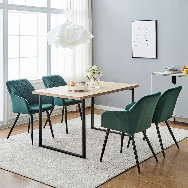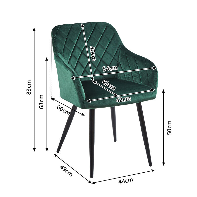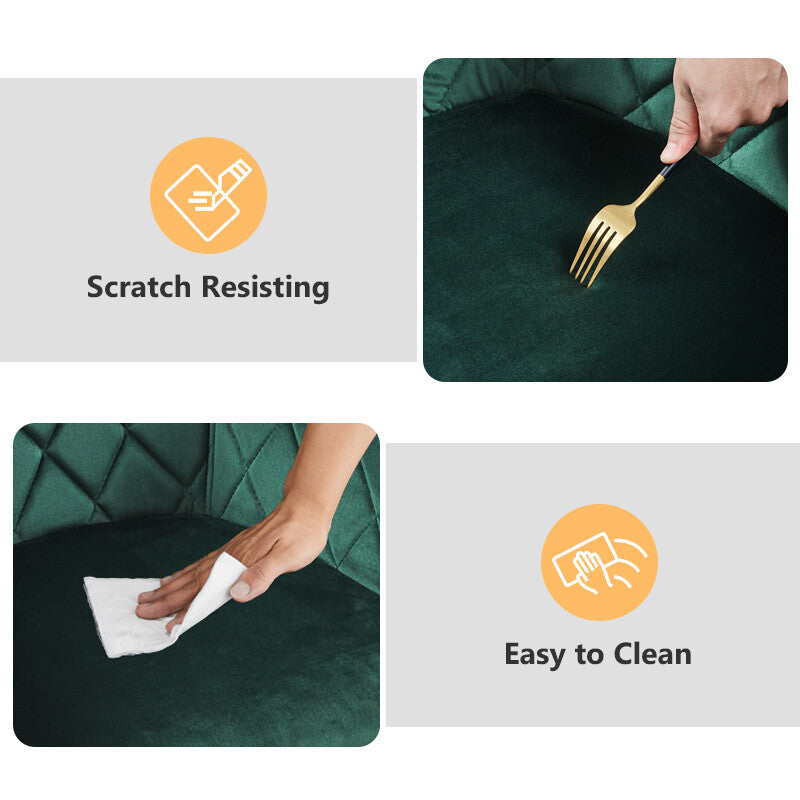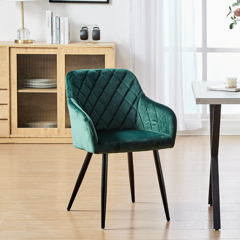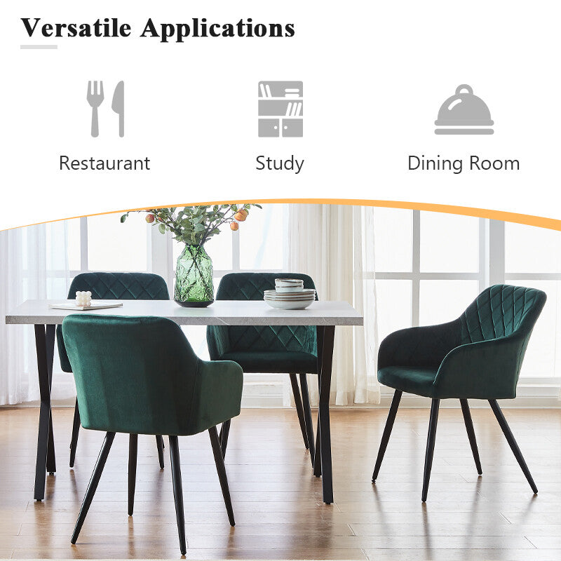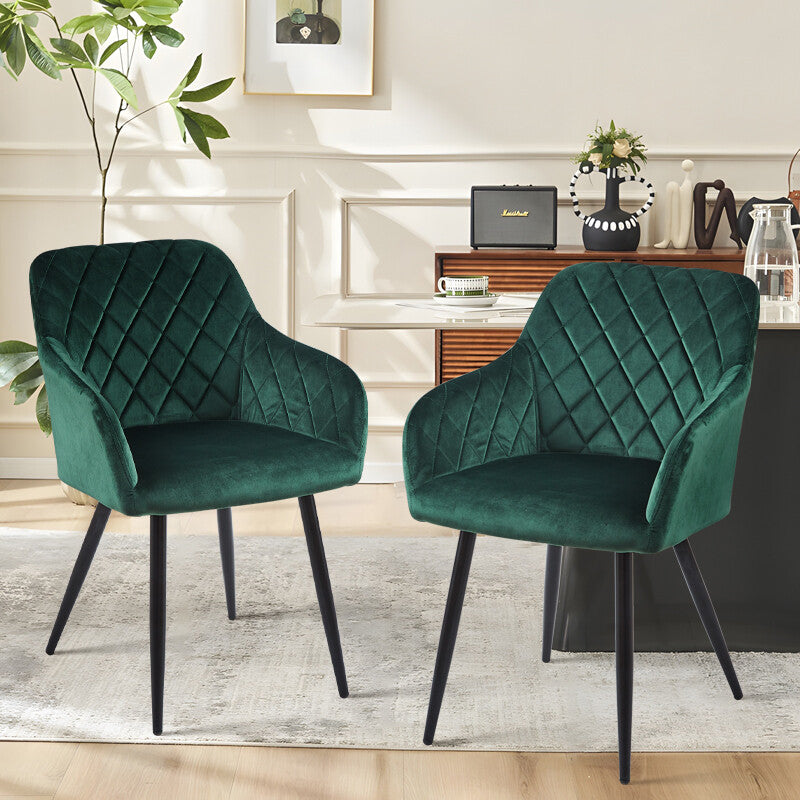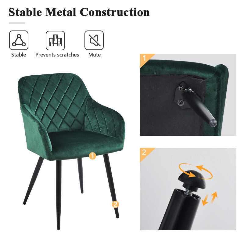 2pcs Dining Chairs Armchairs Velvet Upholstered Soft Padded Seat Back Metal Legs
