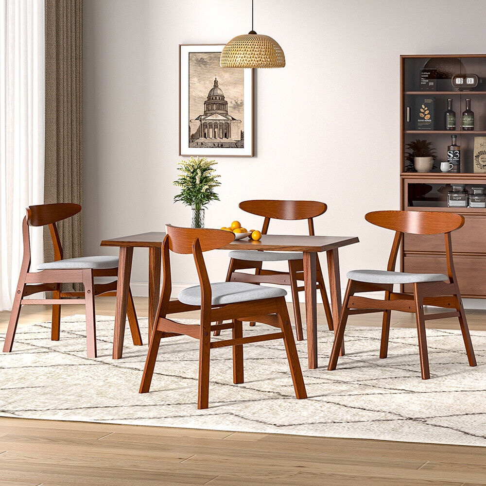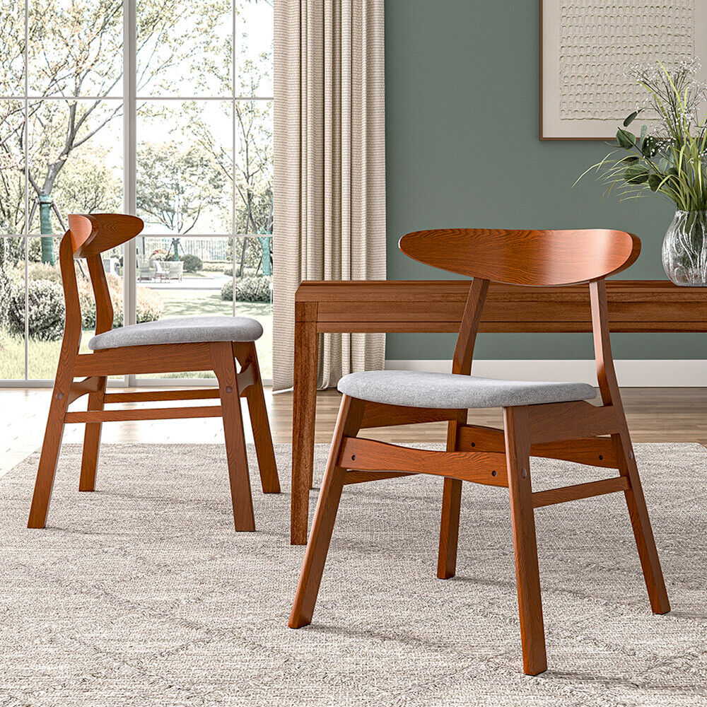 2PCS Dining Chairs Fabric Upholstered Kitchen Seat Side Chairs Solid Wood Frame