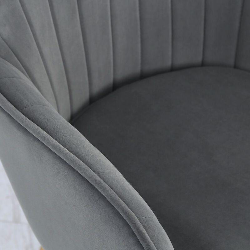 Features Padded Seat, Bucket Ribbed Back, Golden Metal Legs, Scallop Back, Shell Back, Wing Back