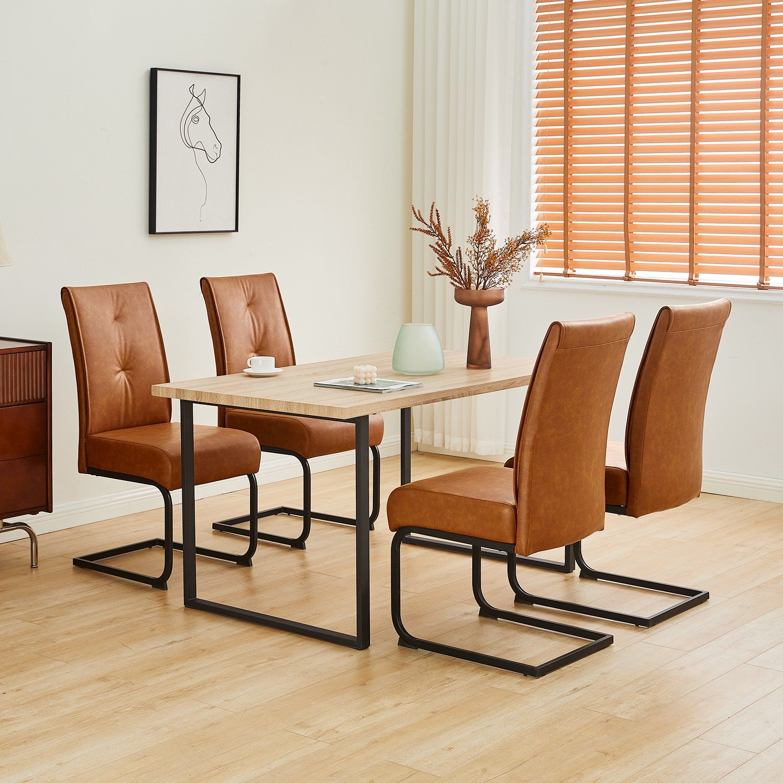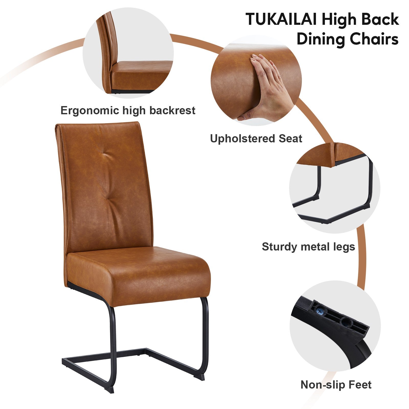 2PCs Dining Chairs PU Metal Legs Leisure Reception Chair Restaurant Brown