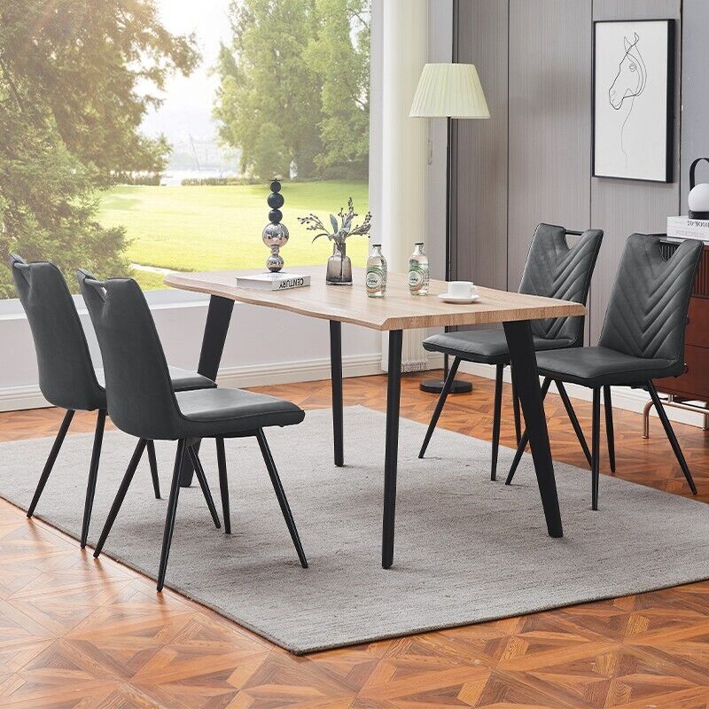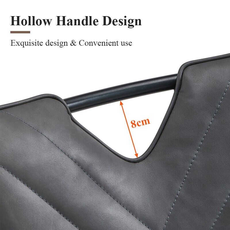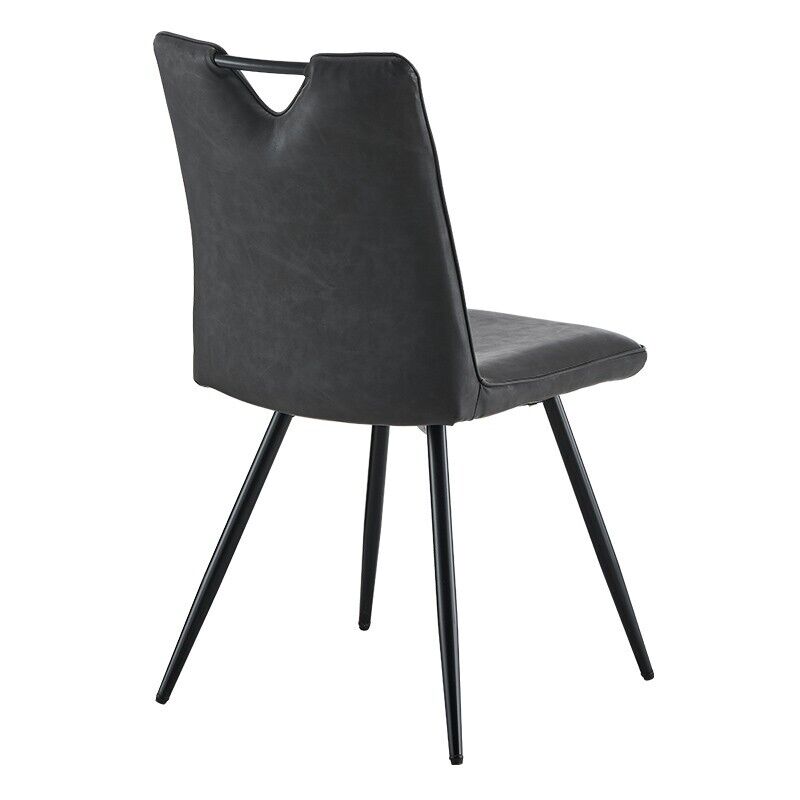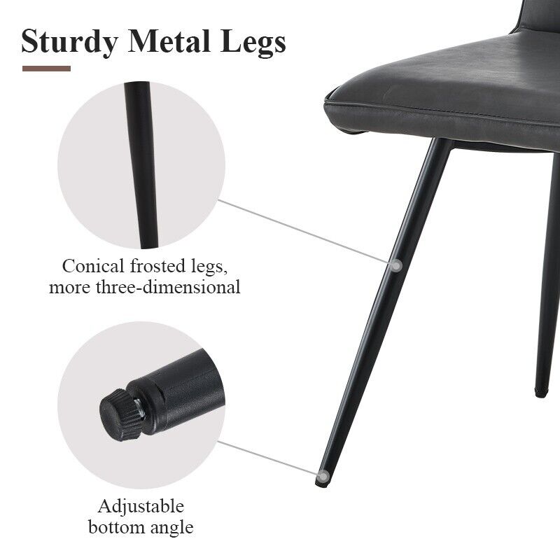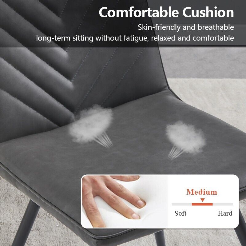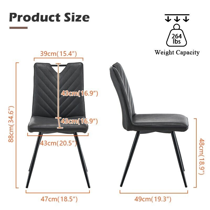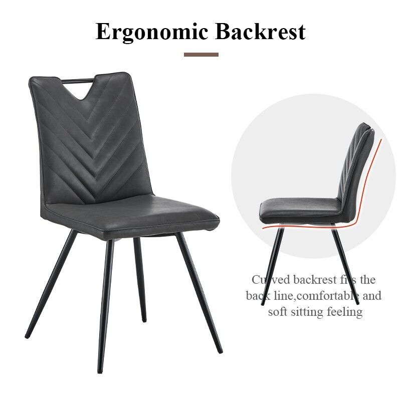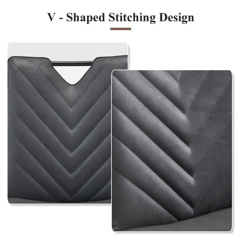 2Pcs Dining Chairs Retro Faux Leather Grey V Stripe Seat Metal Leg High Back