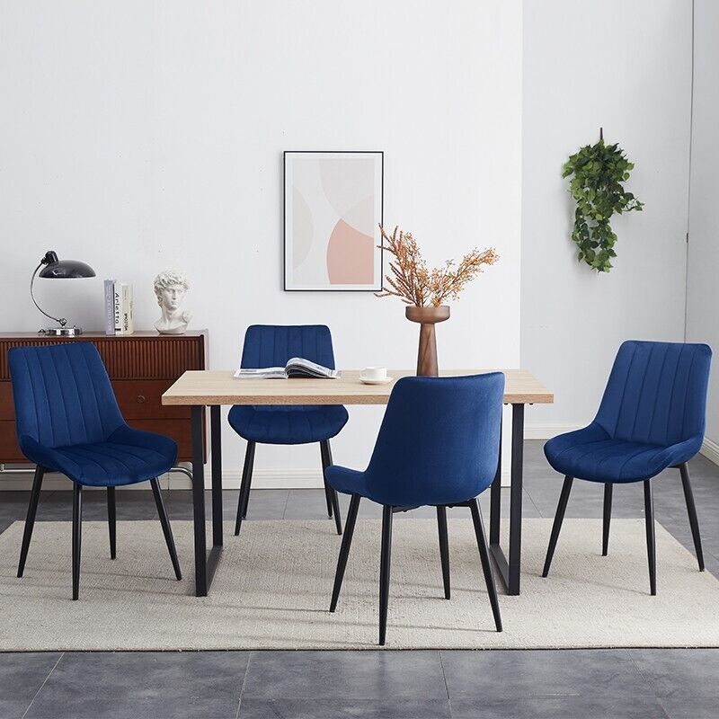 2pcs Dining Chairs Set Ergonomic Velvet Padded Seat Back Restaurant Chair Fabric