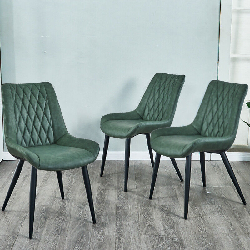 2pcs Dining Chairs Set Faux Leather Back Seat Metal legs Restaurant Hotel Chair