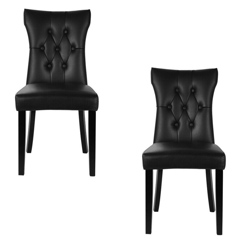 2Pcs Dining Kitchen Chairs High Back Padded Leather Restaurant/Home Modern Black
