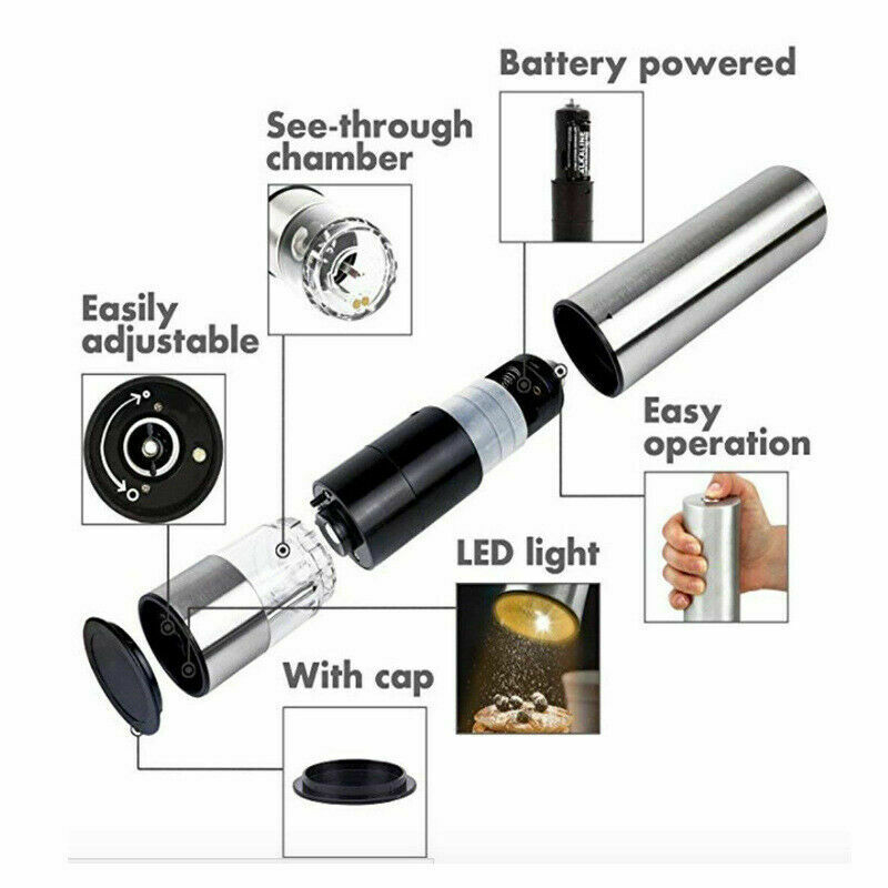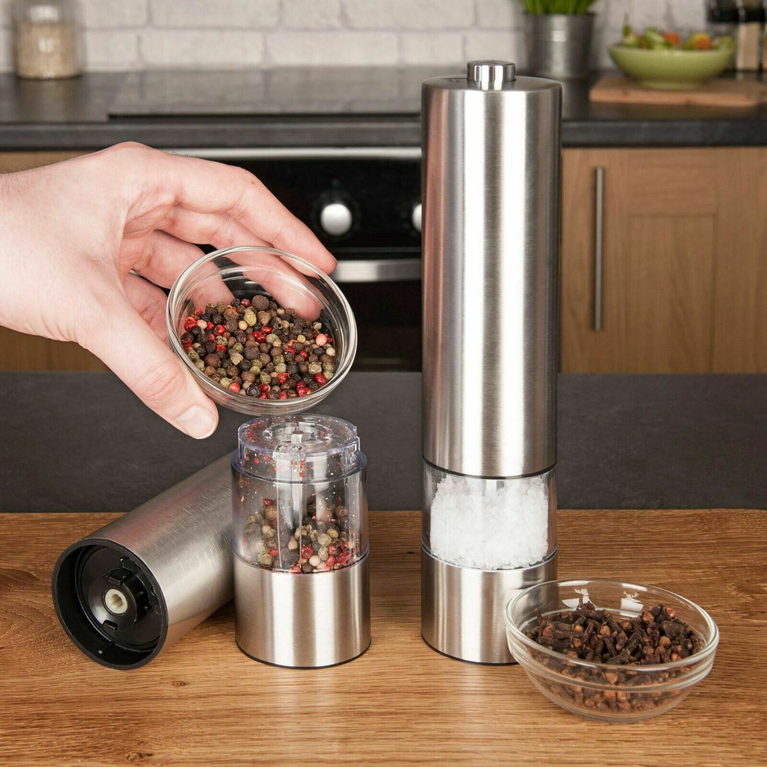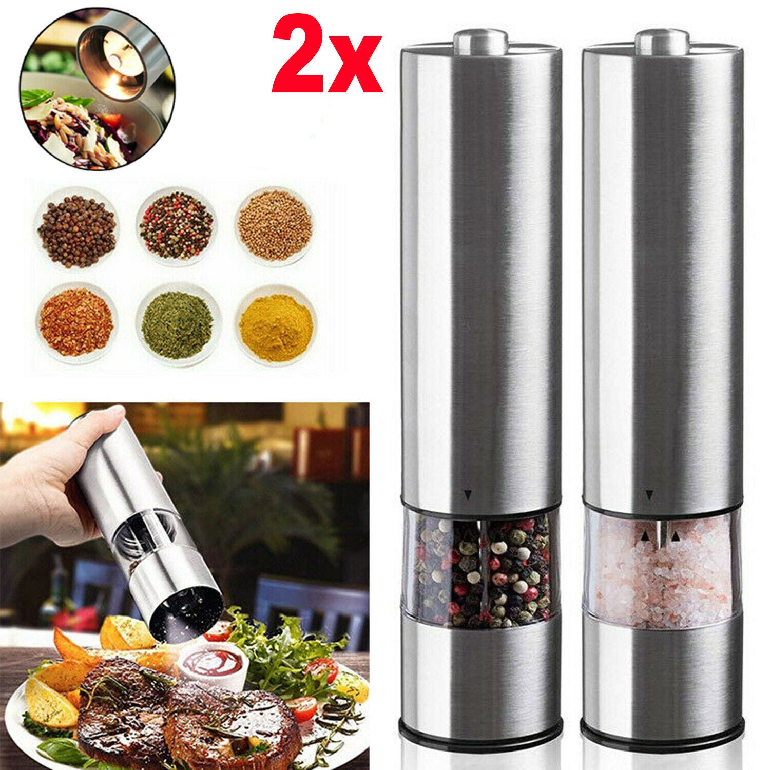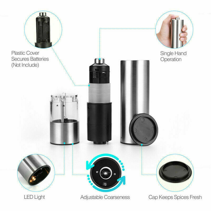 2PCS Electric Salt and Pepper Grinder Set Shaker Mills Adjustable Coarseness Set