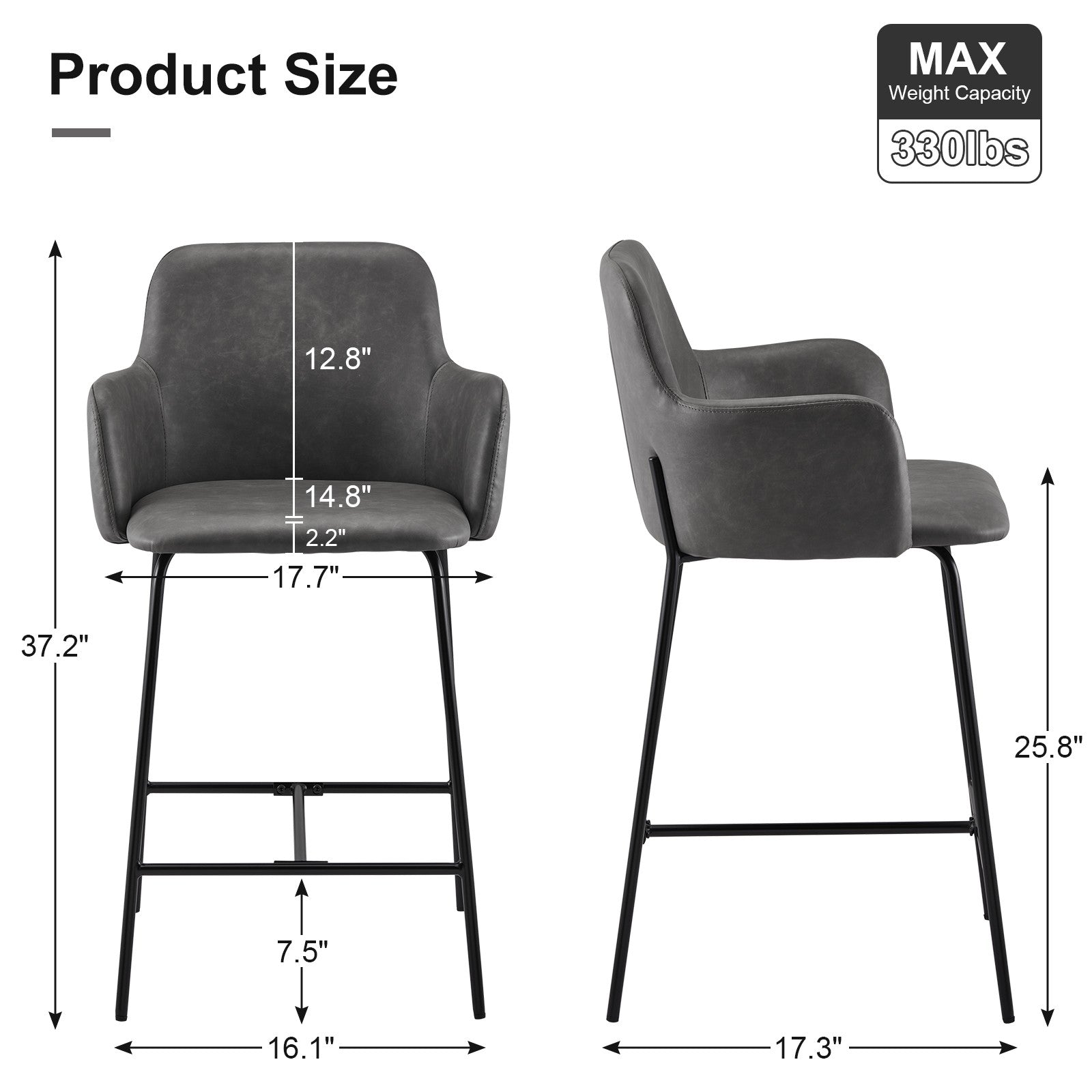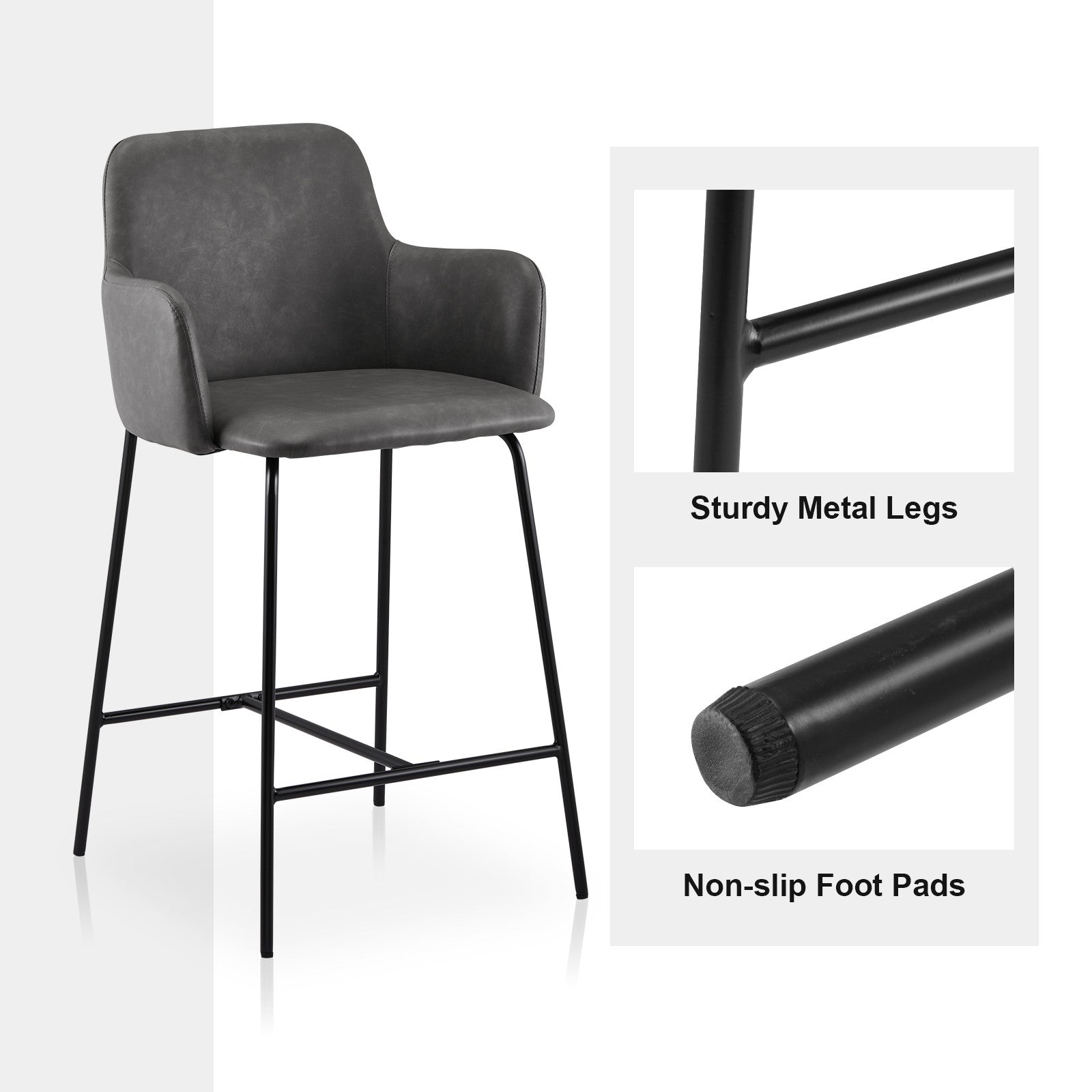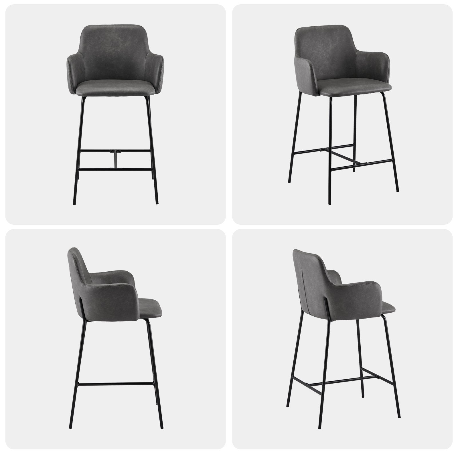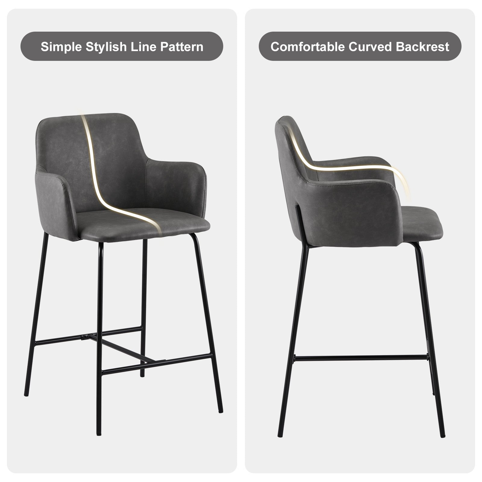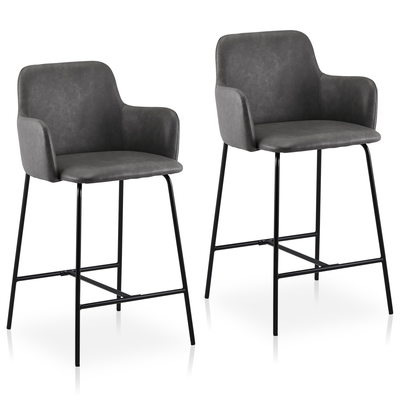 2PCs Faux Leather Bar Stool Breakfast Kitchen Bar Chair w/ Backrest Footrest