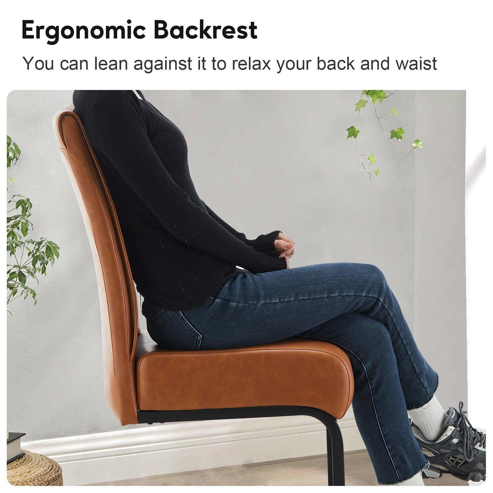 2PCs Faux Leather Dining Chairs Metal Legs Leisure Reception Chair Restaurant