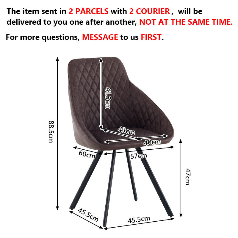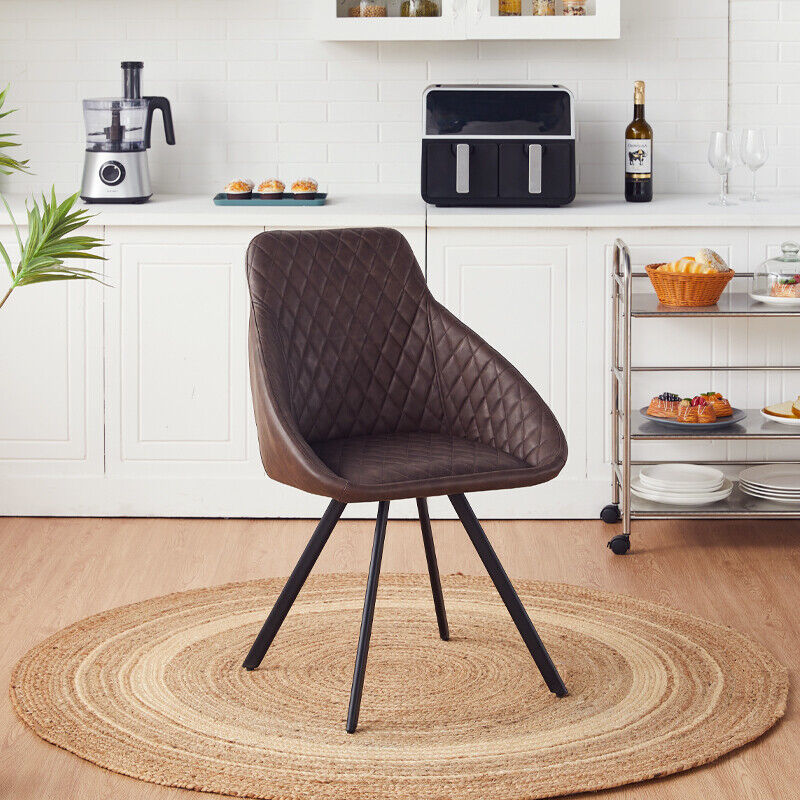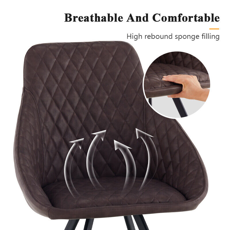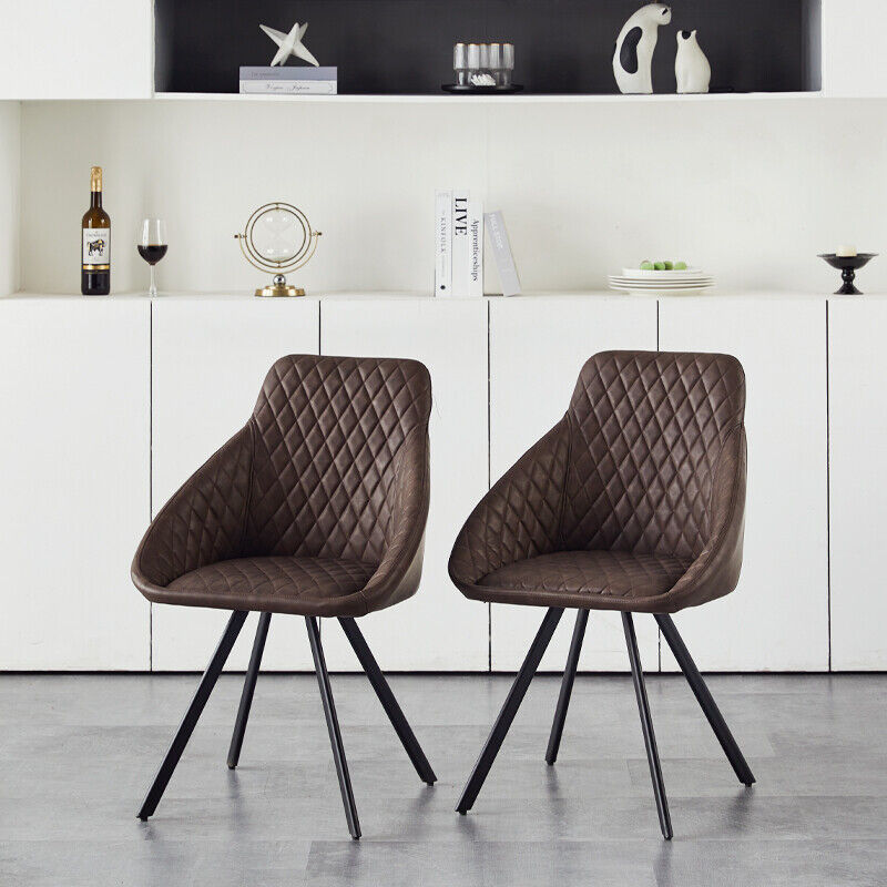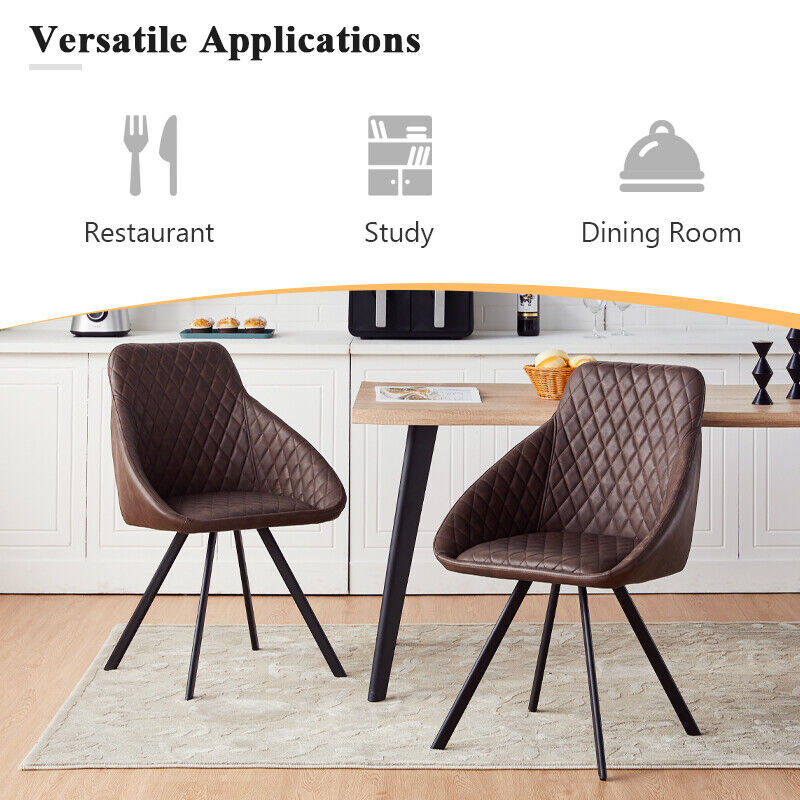 2Pcs Faux Leather Dining Chairs Padded Seat Dining Room Chair Metal Legs