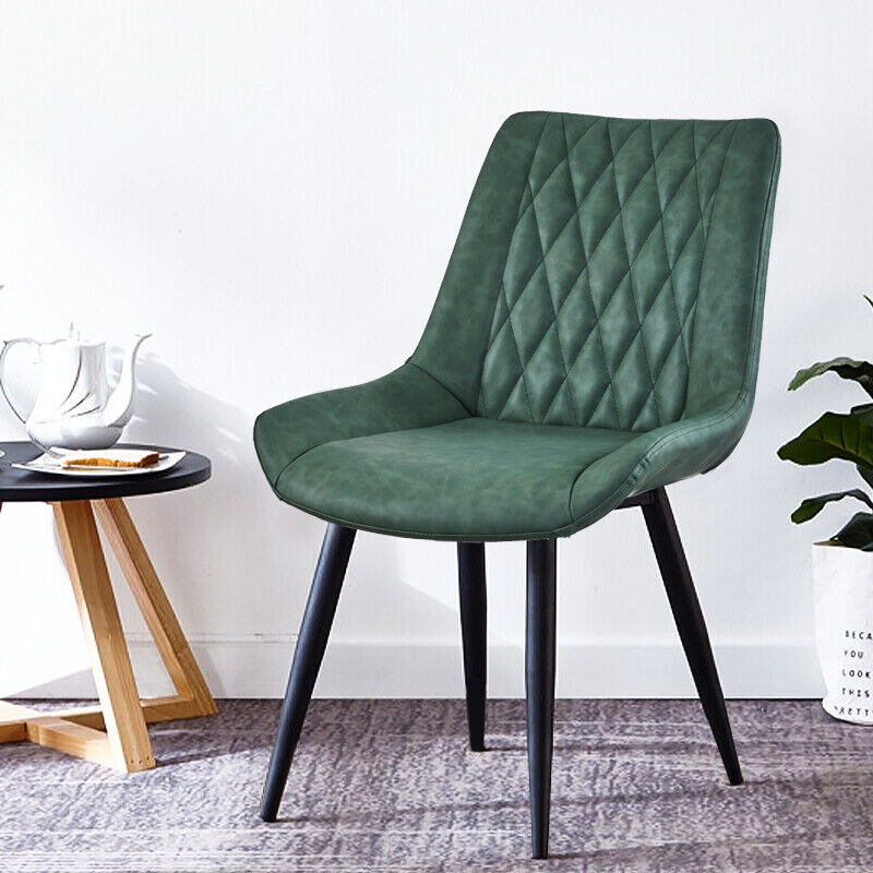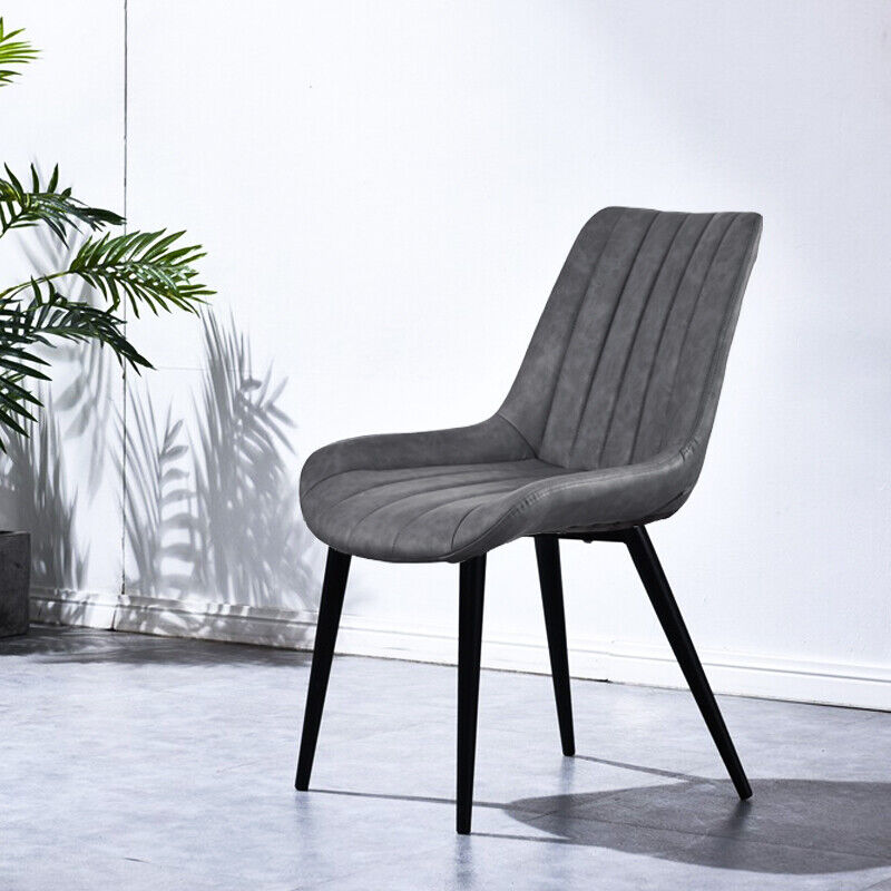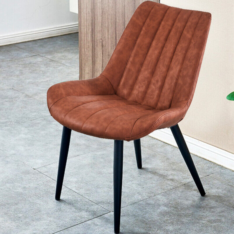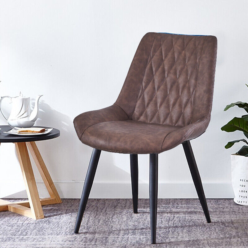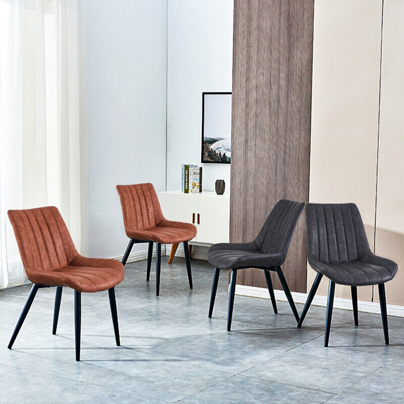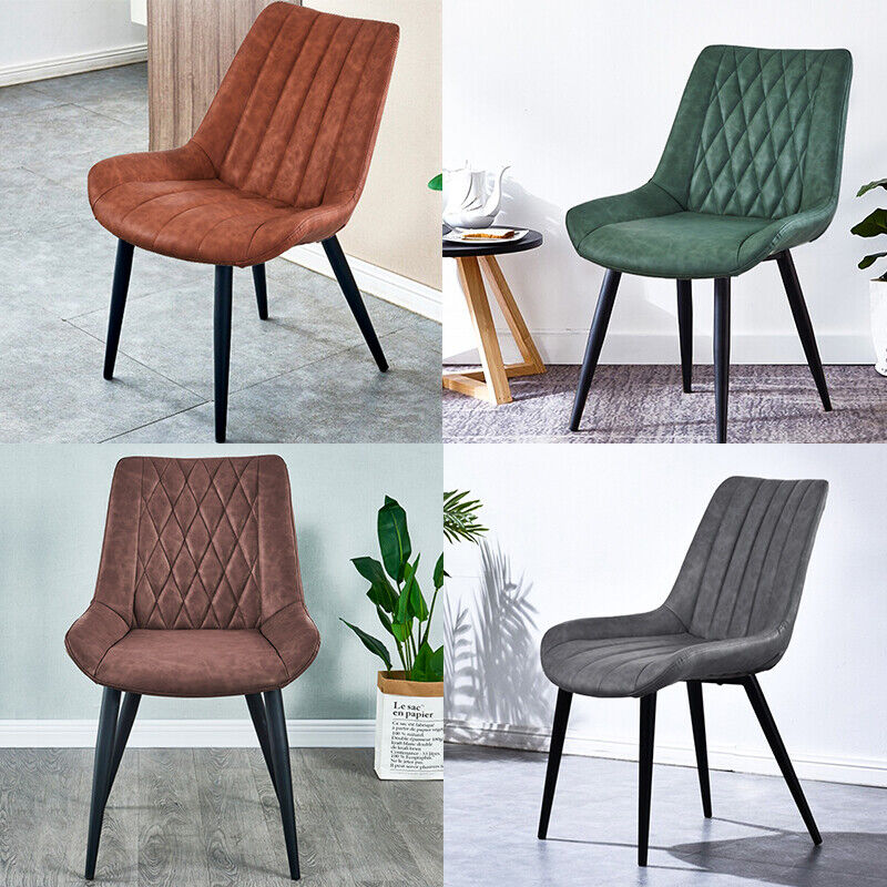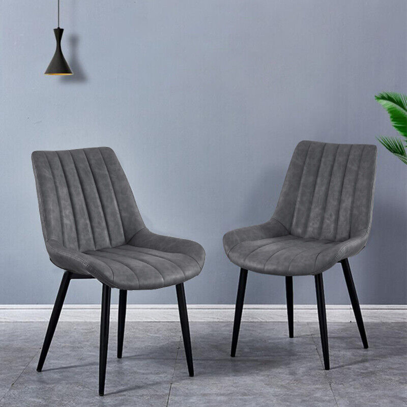 2pcs Faux Leather Dining Chairs Set PU Back Seat Metal Legs Restaurant Chair