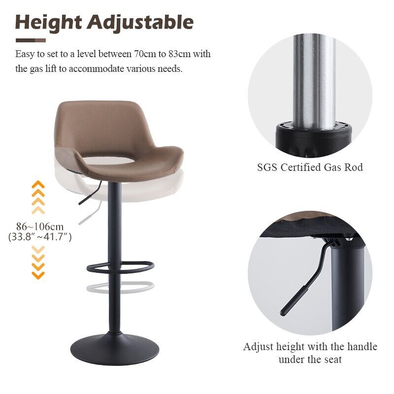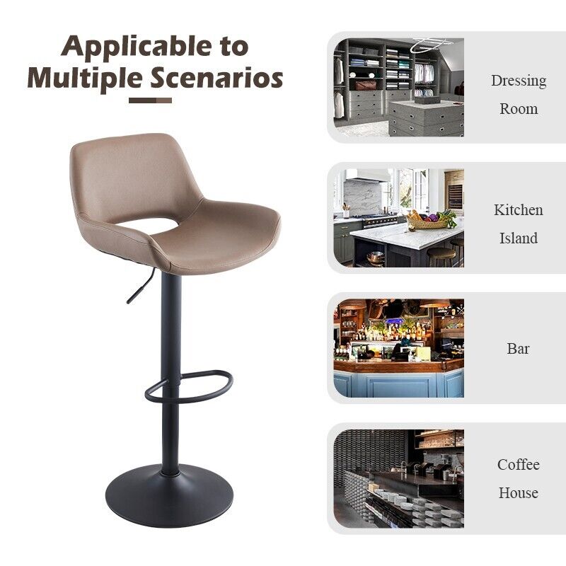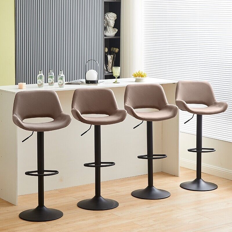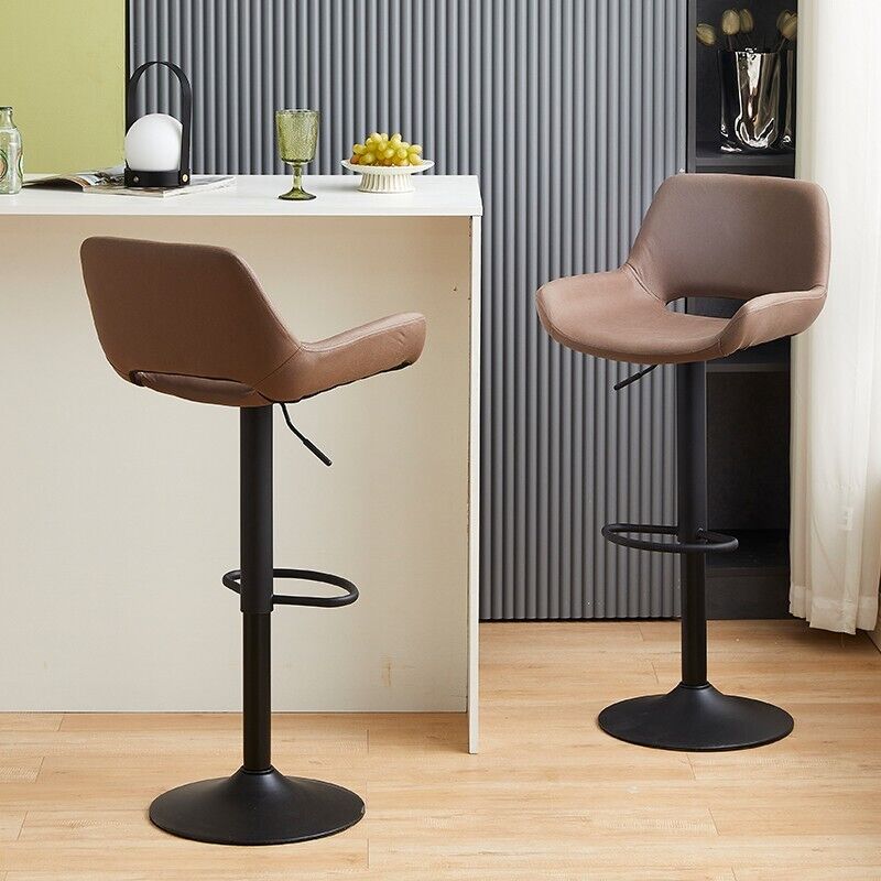 2pcs Faux Suede Cushioned Barstools Metal Base Breakfast Salon Chair Adjustable