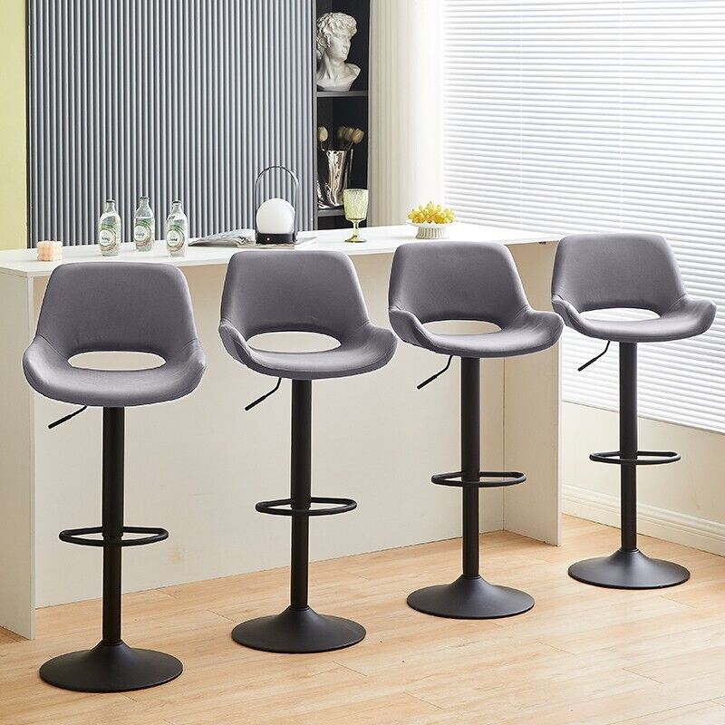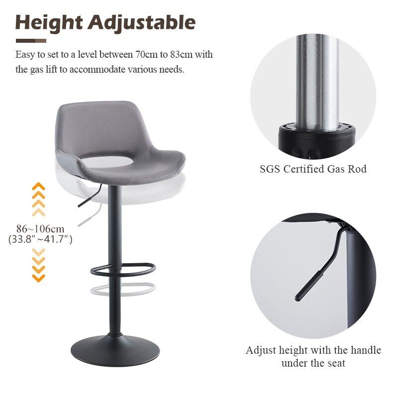 2pcs Faux Suede Seat Back Barstools Metal Base Breakfast Salon Chair Adjustable