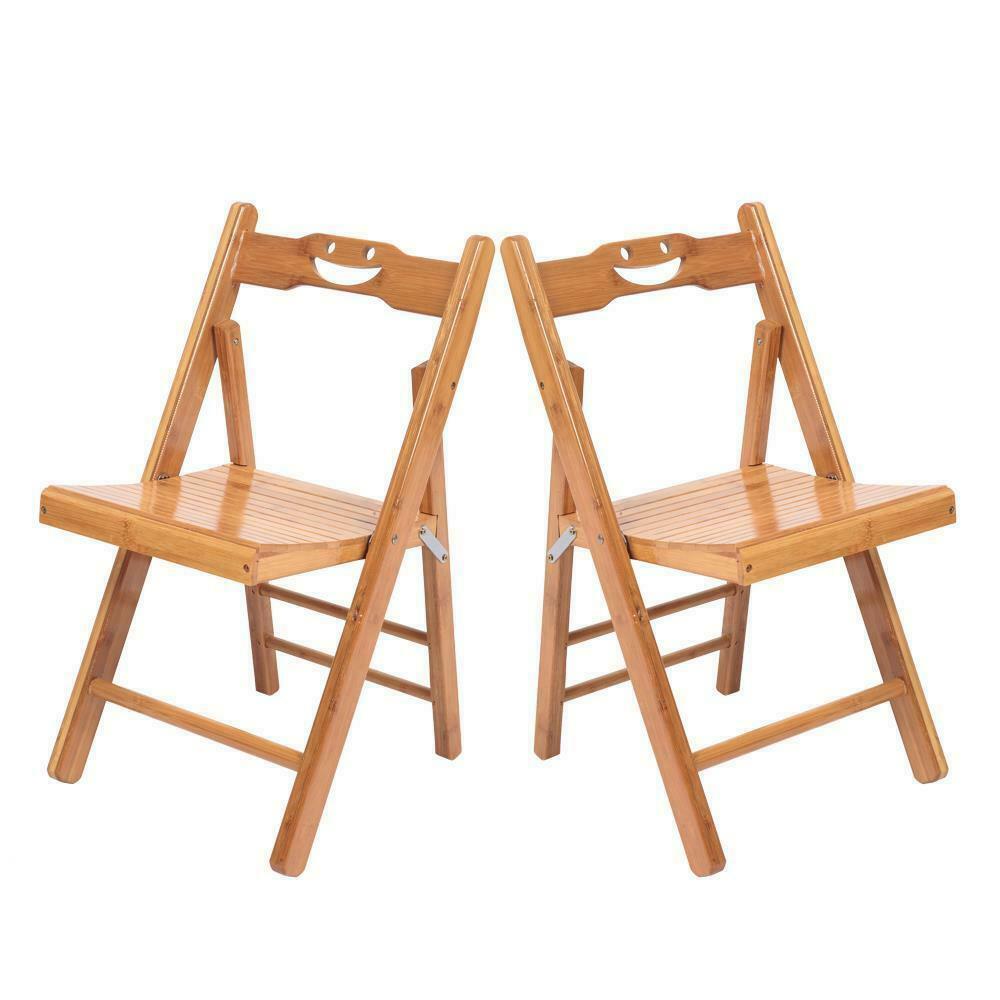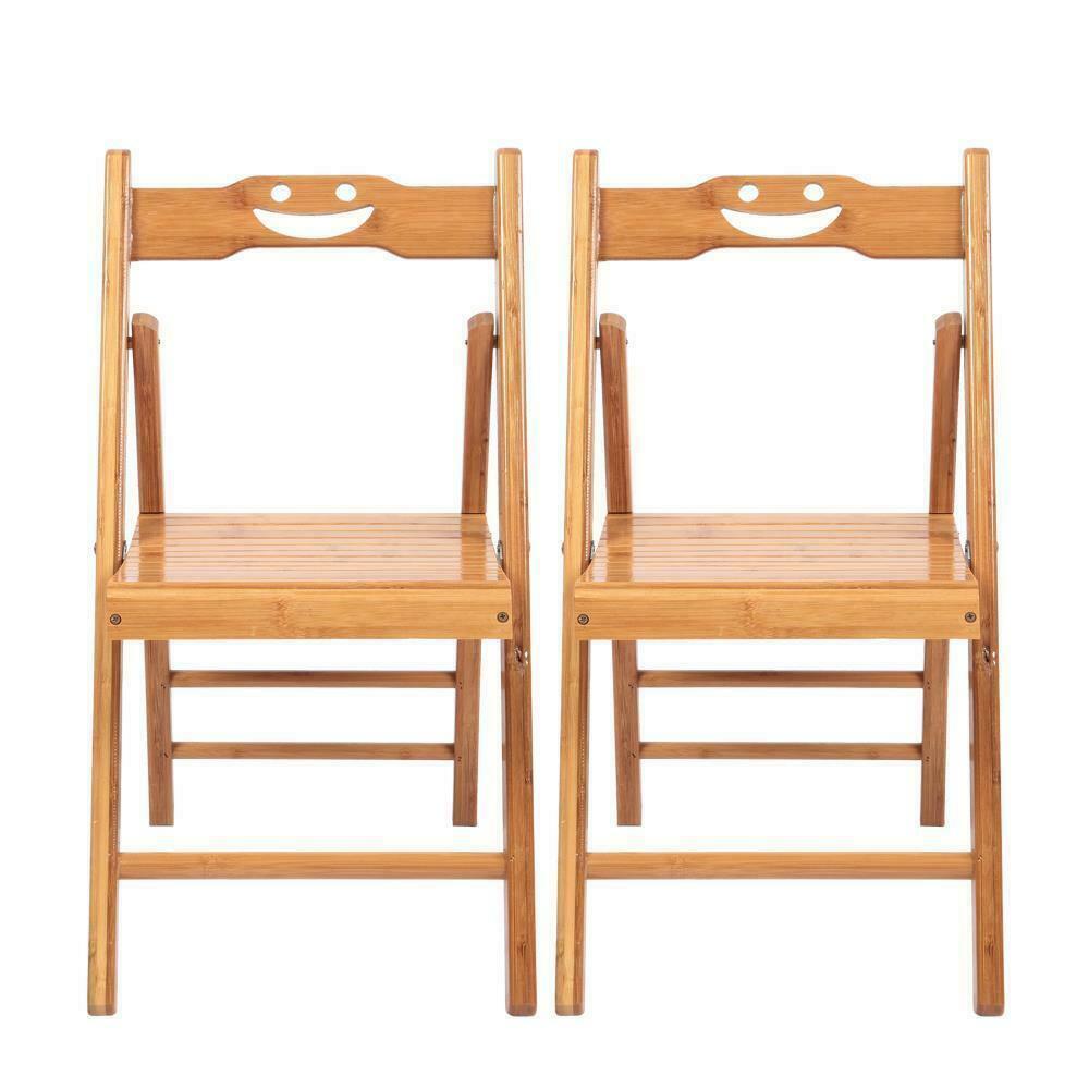 2PCS Folding Chairs Wood Bamboo Studying Dining Room Student Chair Stool Seat