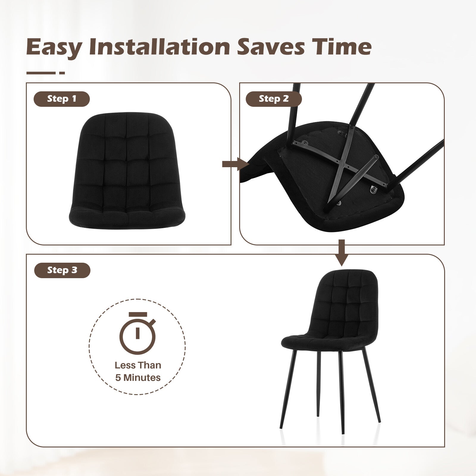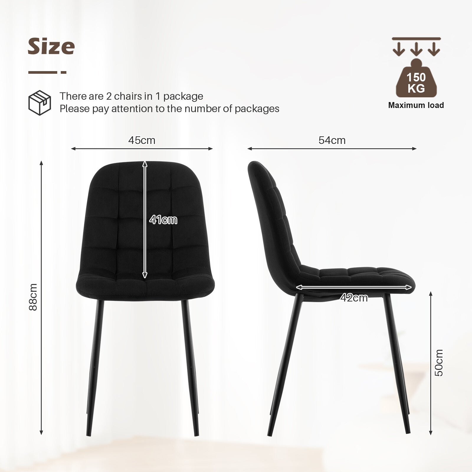 2Pcs Folk Designer Fabric or Velvet Dining Chairs Metal Legs Chairs
