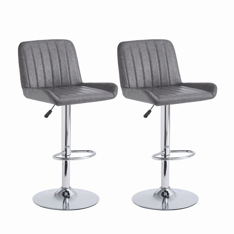 2pcs Gray Faux Leather Silver Chromed Base Swivel Bar Stool Height Adjustable