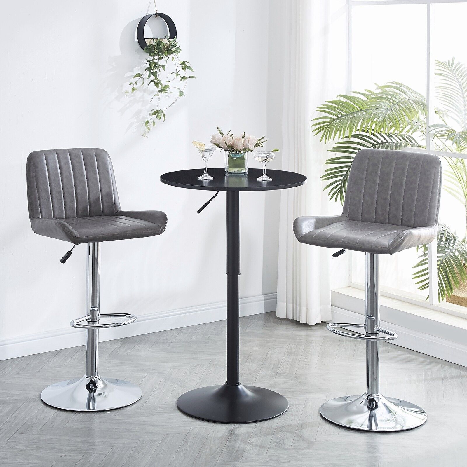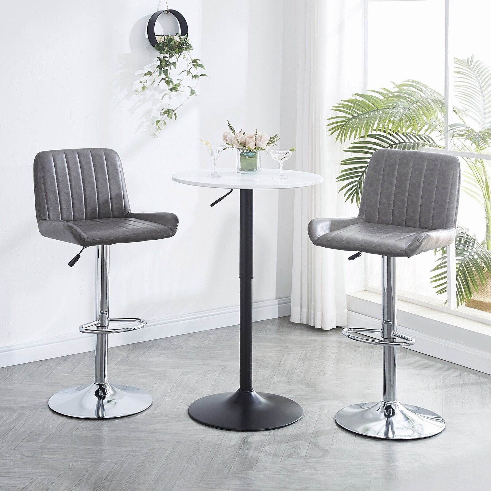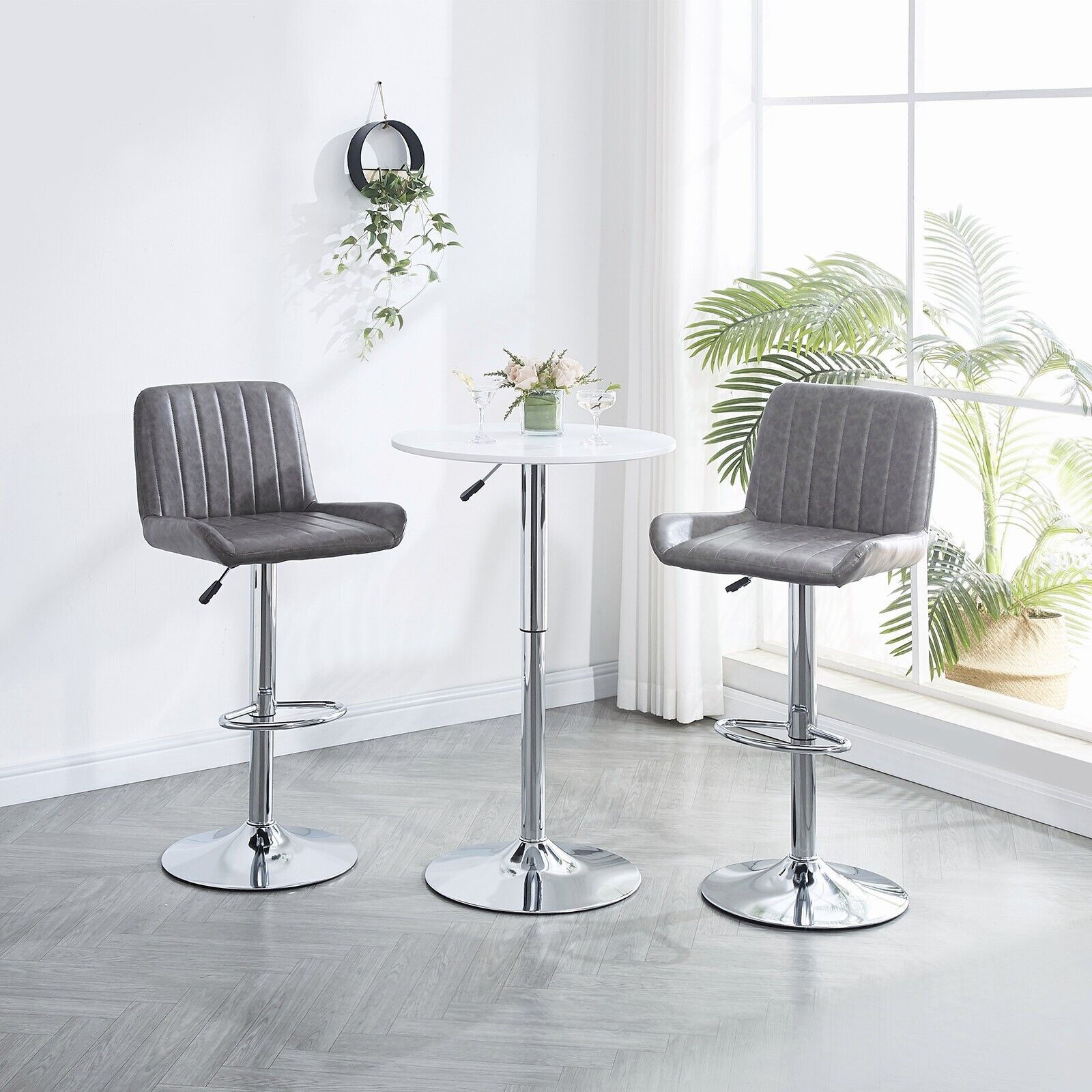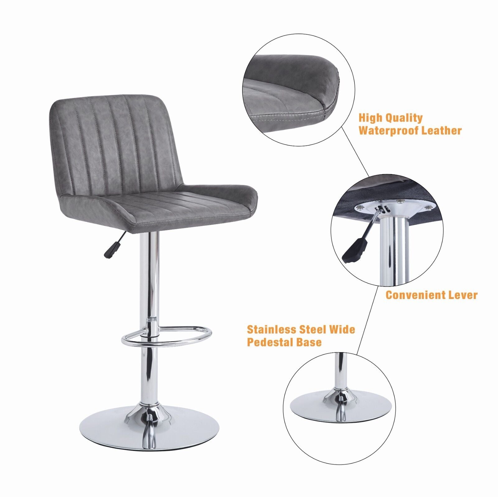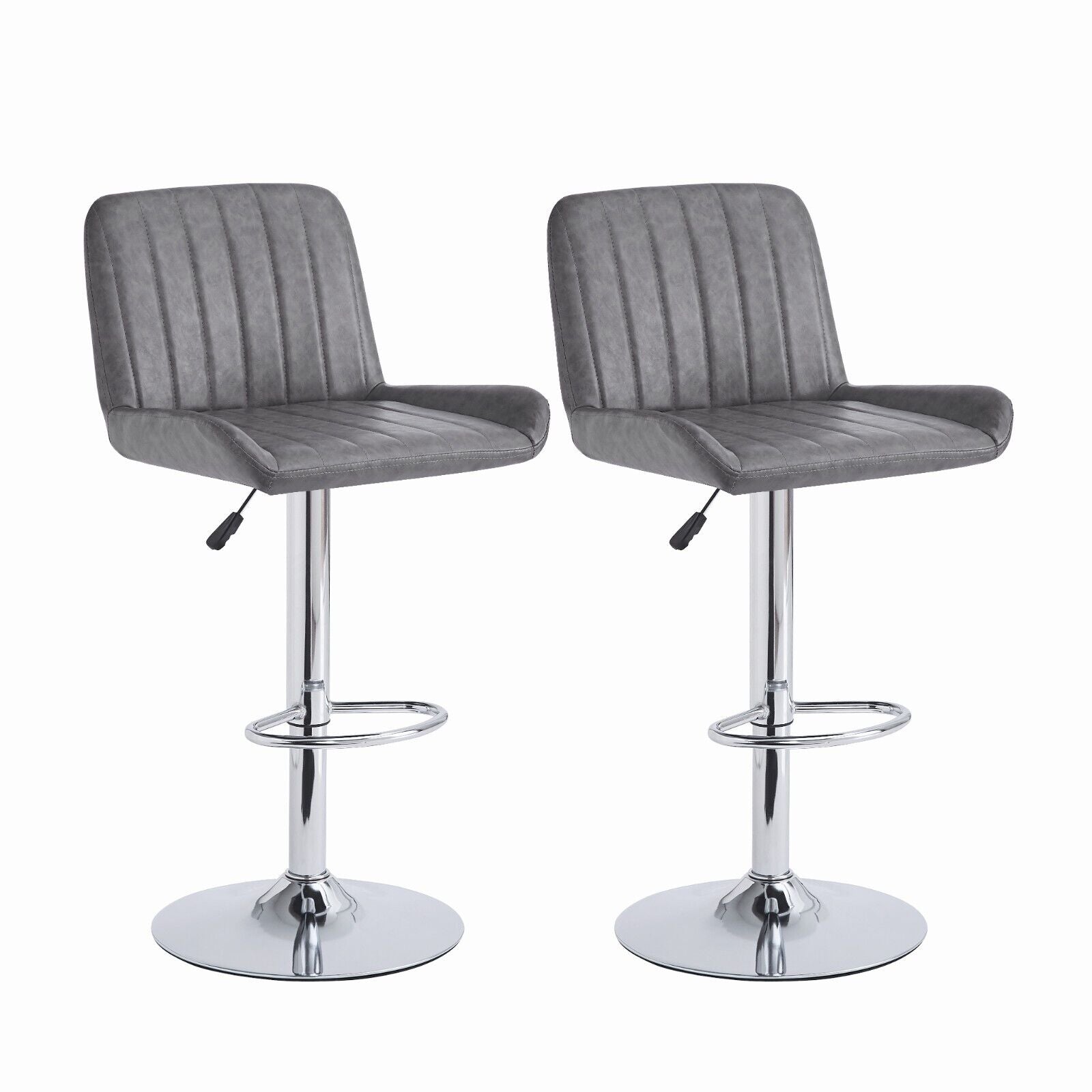 2pcs Gray Faux Leather Silver Chromed Base Swivel Bar Stool Height Adjustable