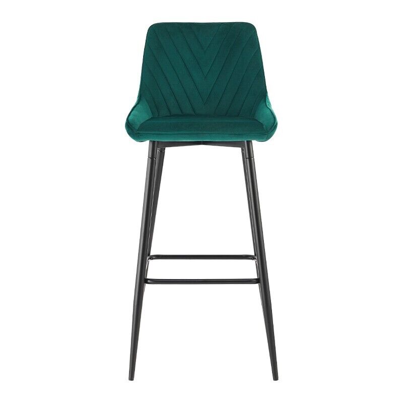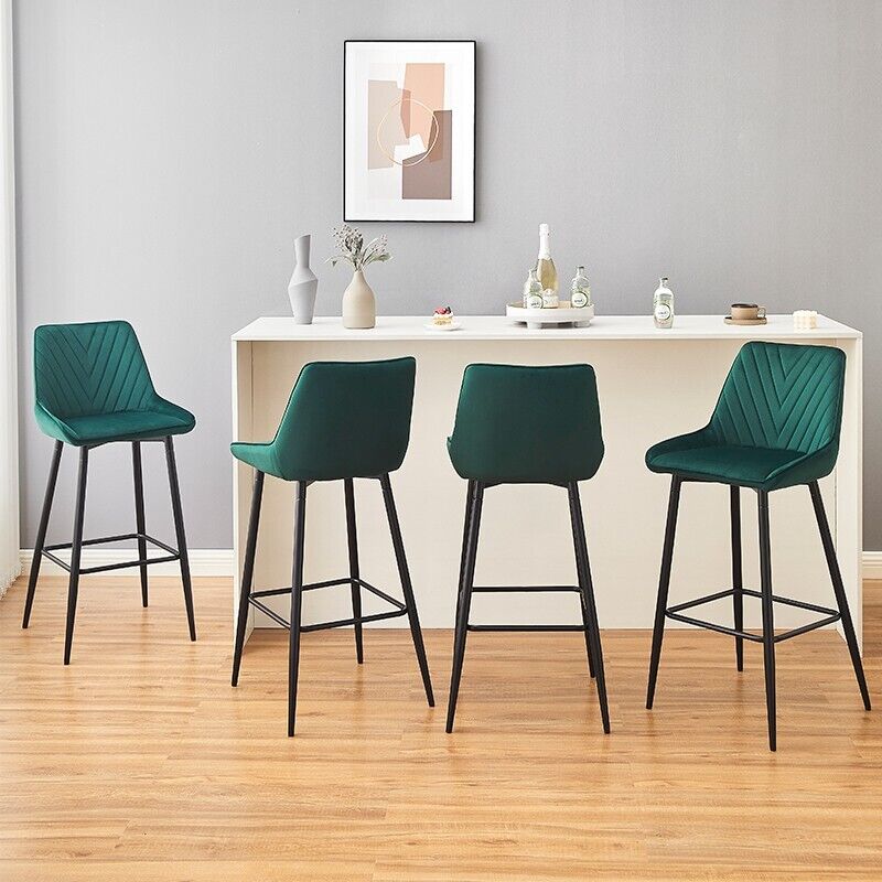 2Pcs Green Bar Stools Velvet Breakfast Pub Chair Kitchen Shape V Design