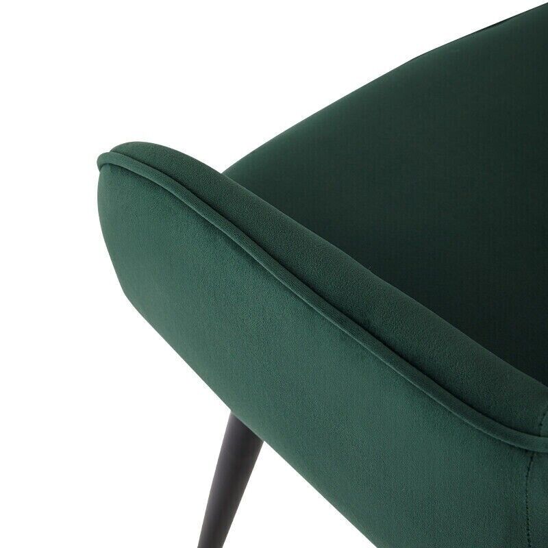 2pcs Green Velvet Dining Chairs Set Padded Seat Metal Legs Kitchen Furniture