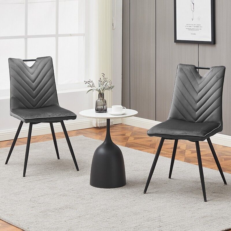 2Pcs Grey Dining Chairs Velvet Padded Seat Restaurant Chair Modern