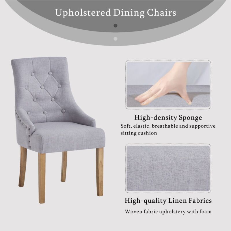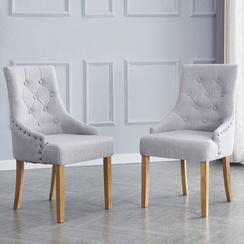 2pcs Grey Fabric Dining Chairs Button-Tufted Upholstered Armchairs with Rivets