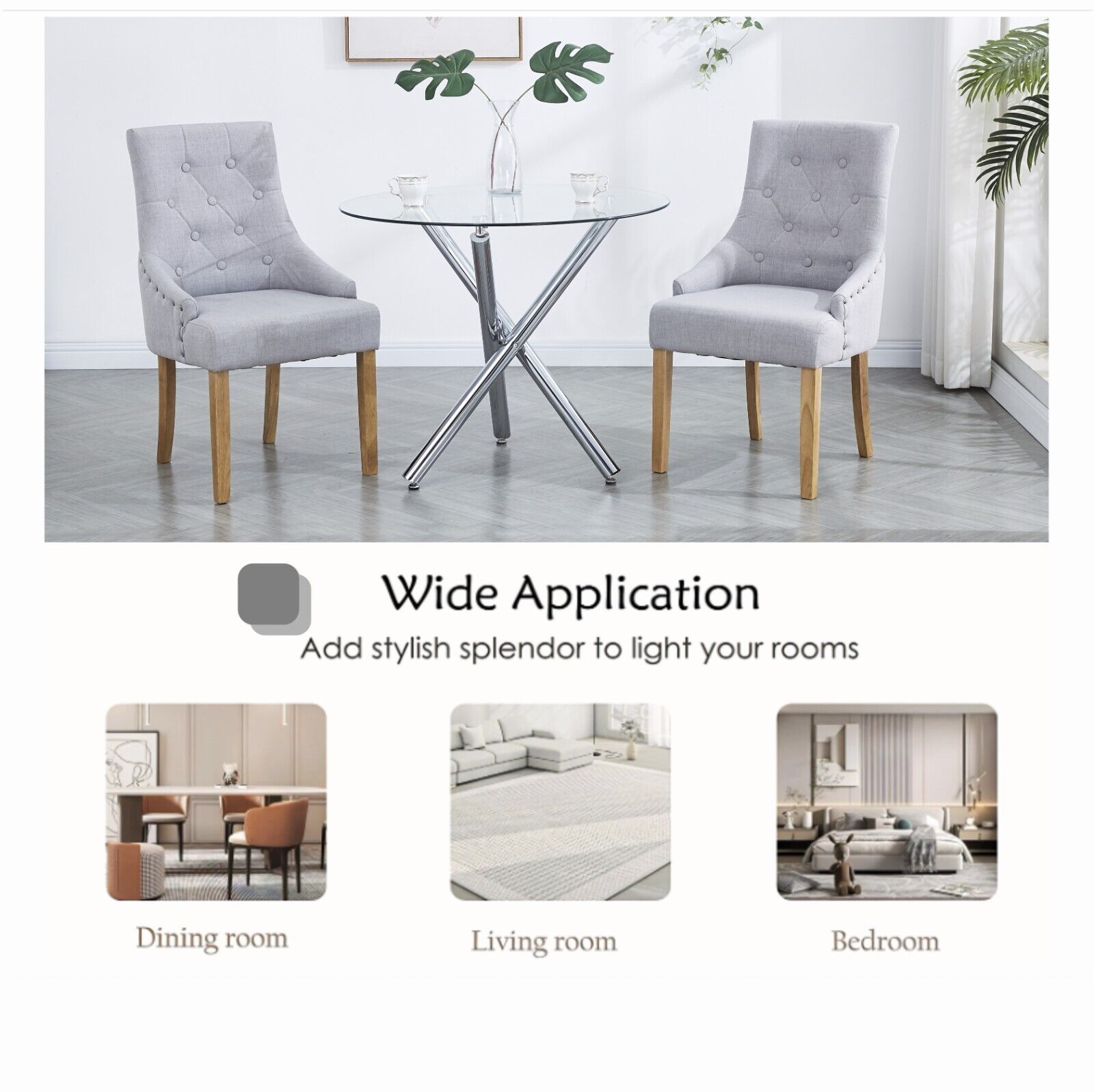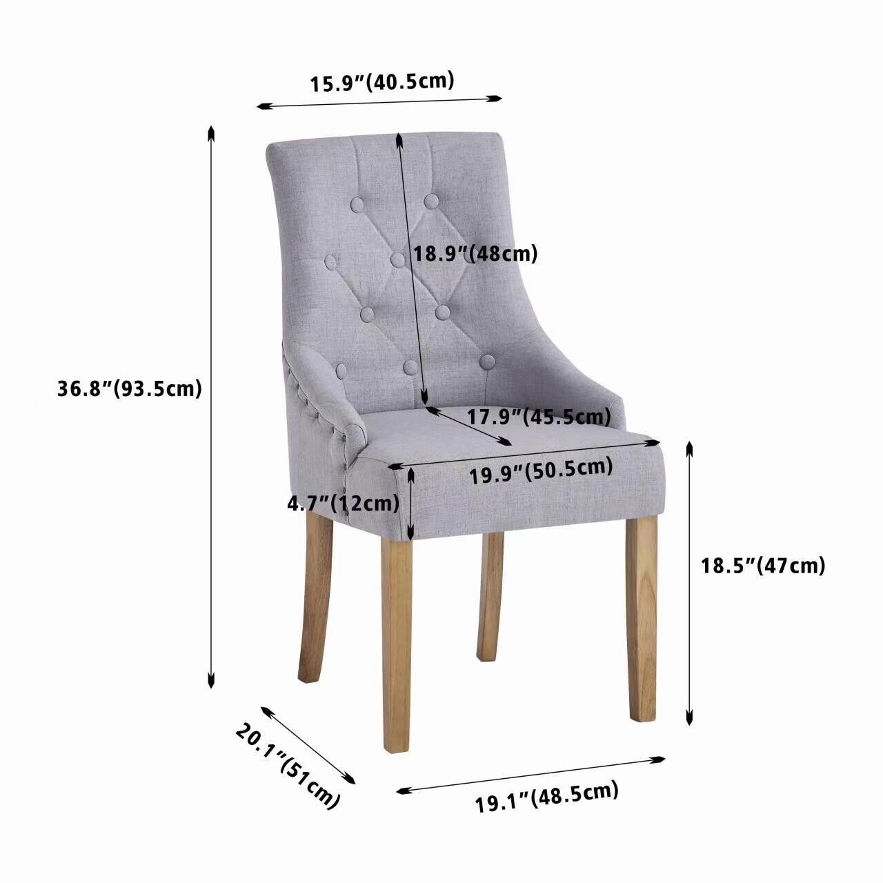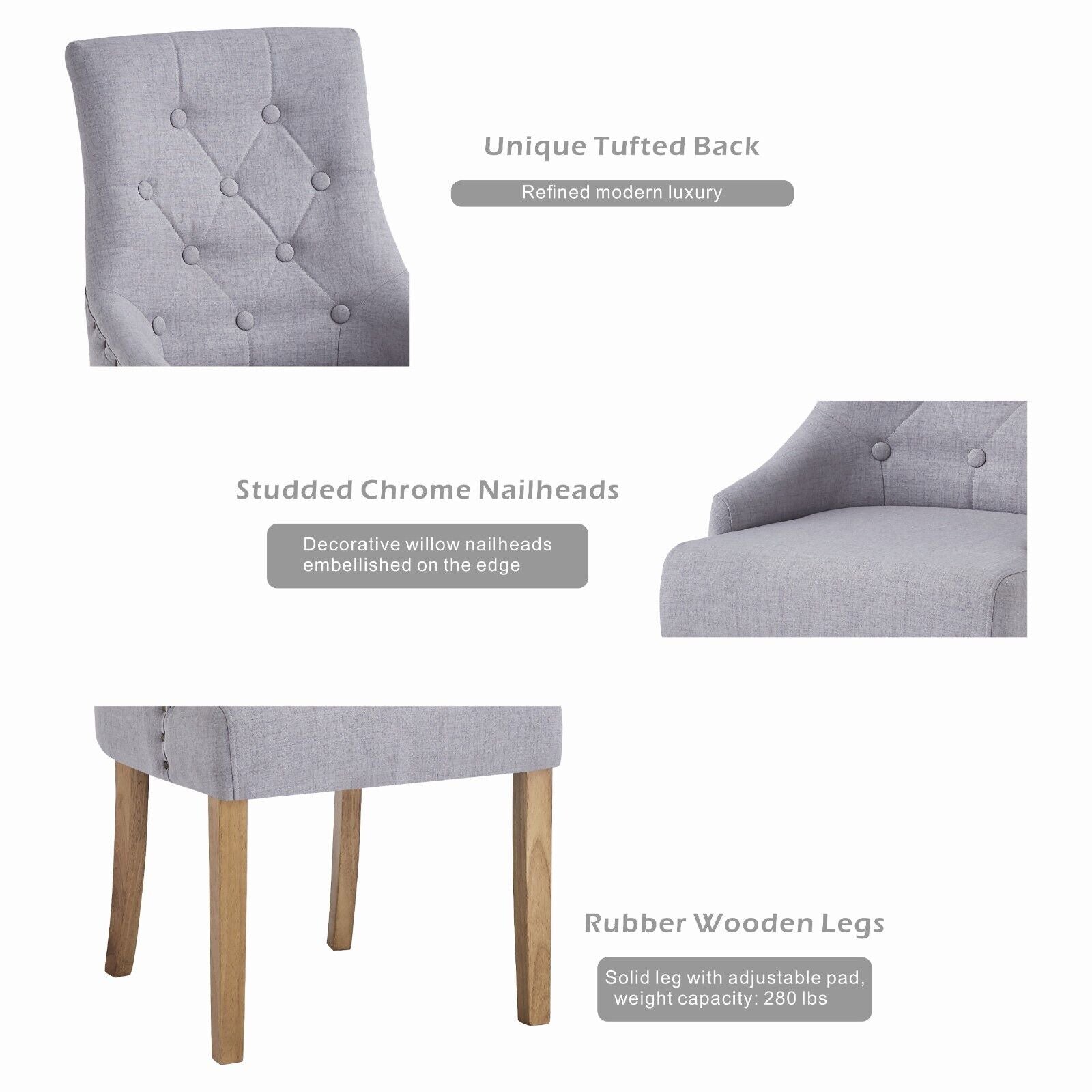 2pcs Grey Fabric Dining Chairs Button-Tufted Upholstered Armchairs with Rivets