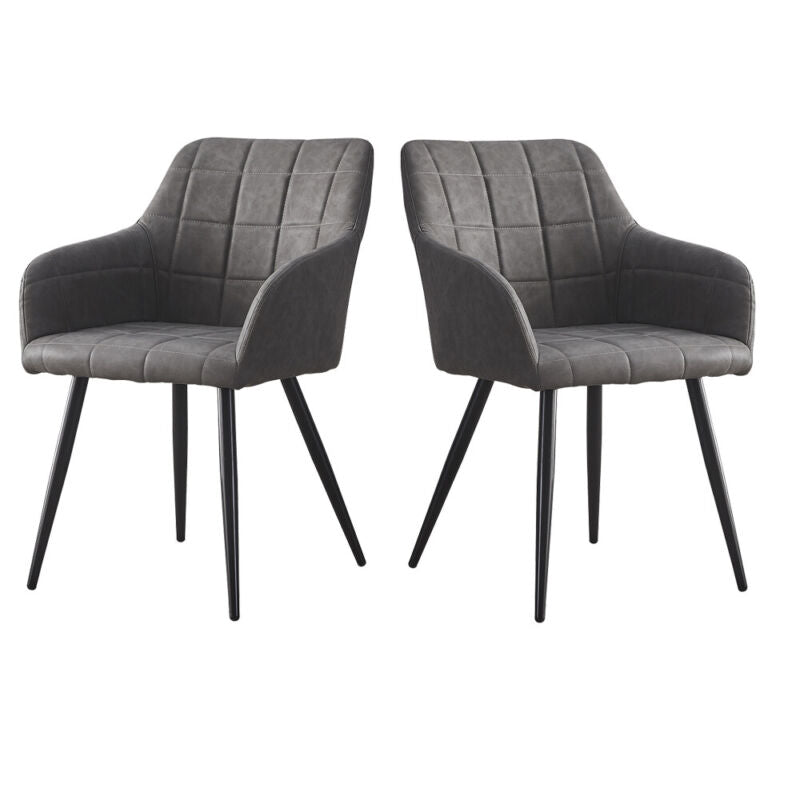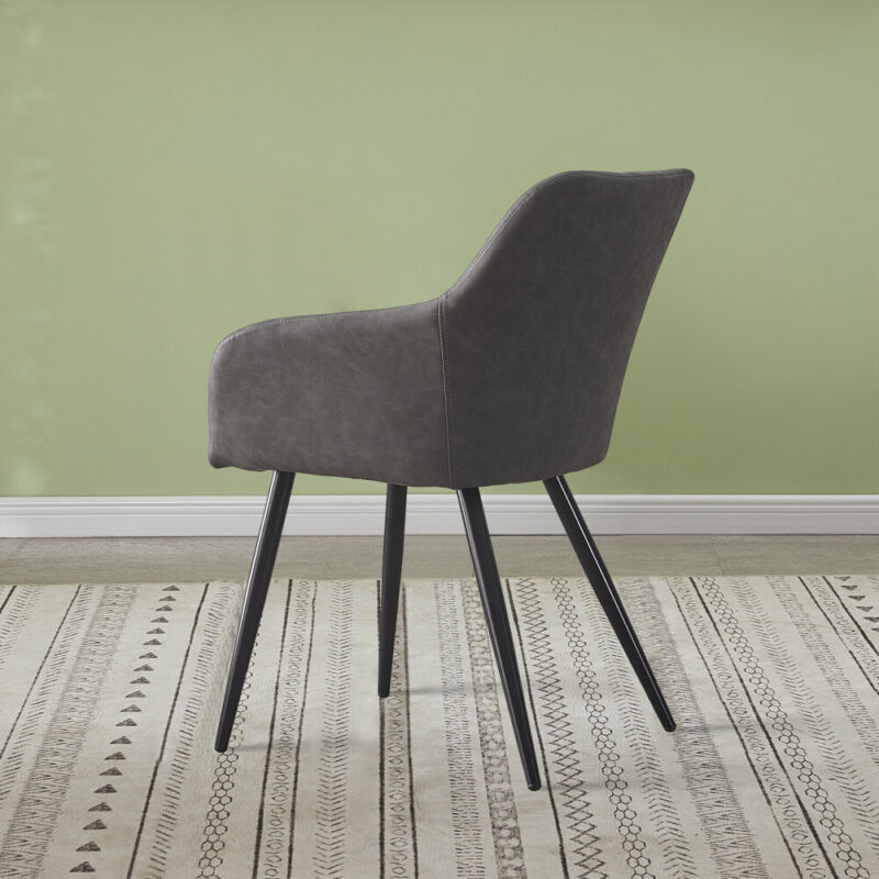 2PCS Grey Faux Leather Dining Chairs Upholstered Accent Chair Lounge Office