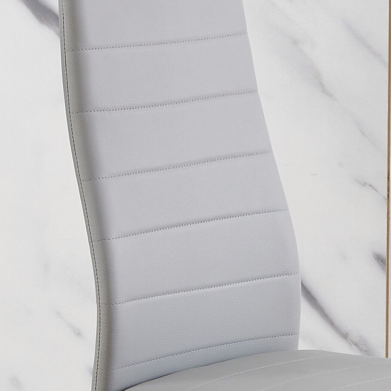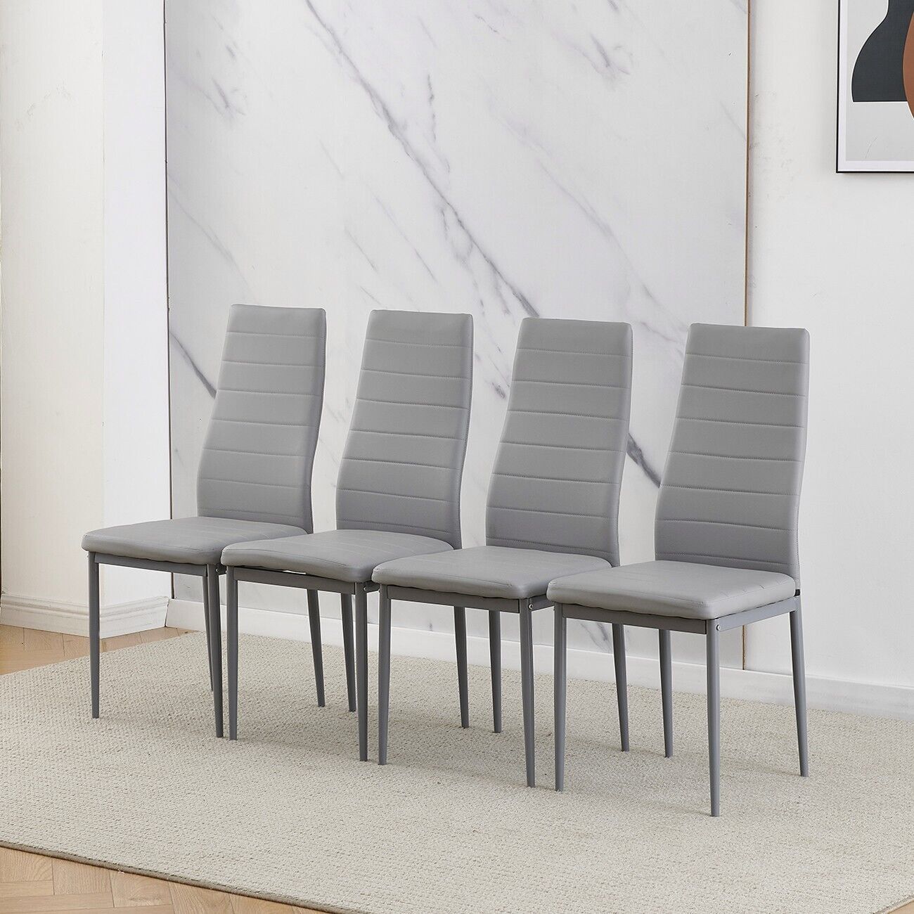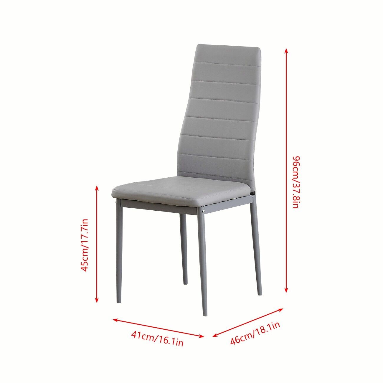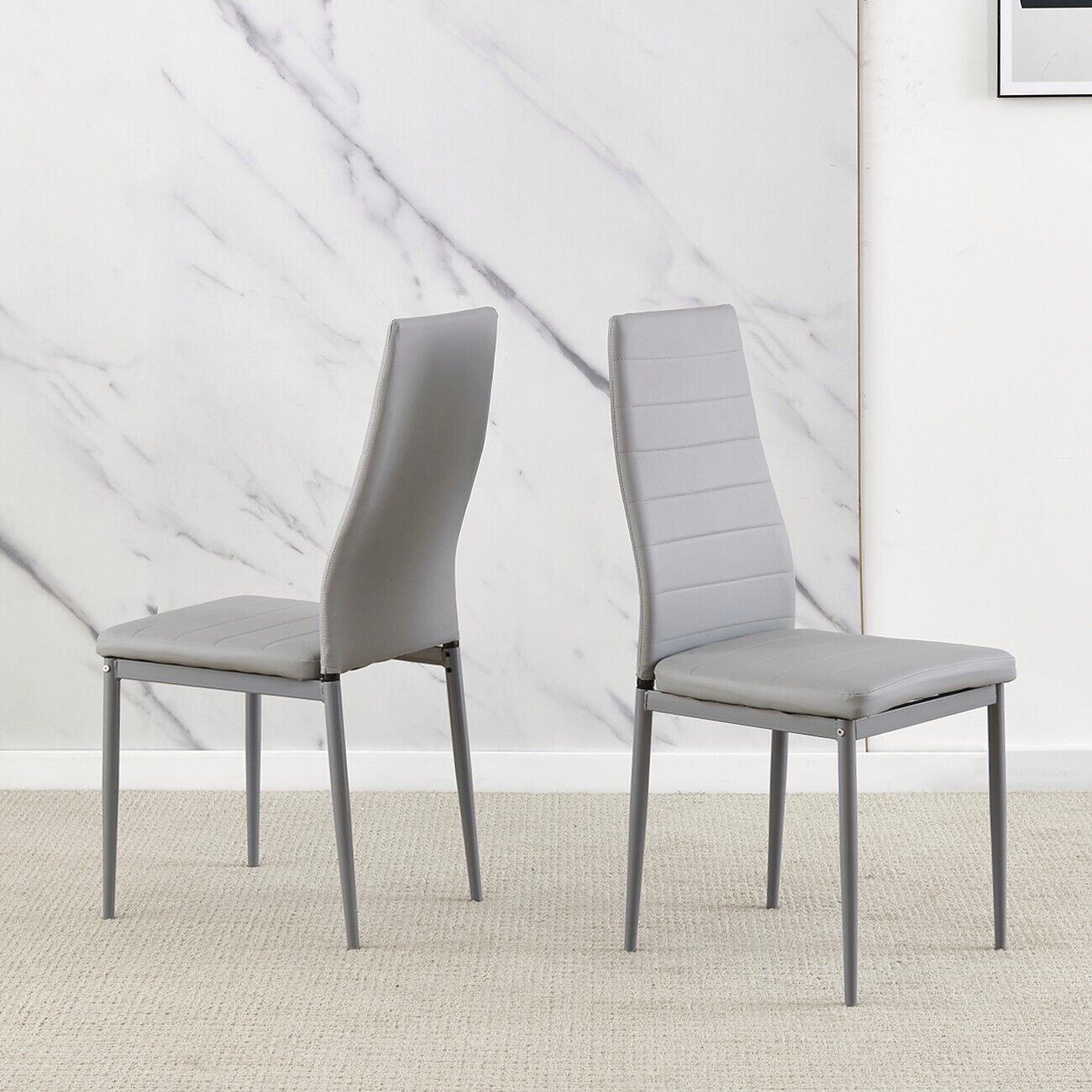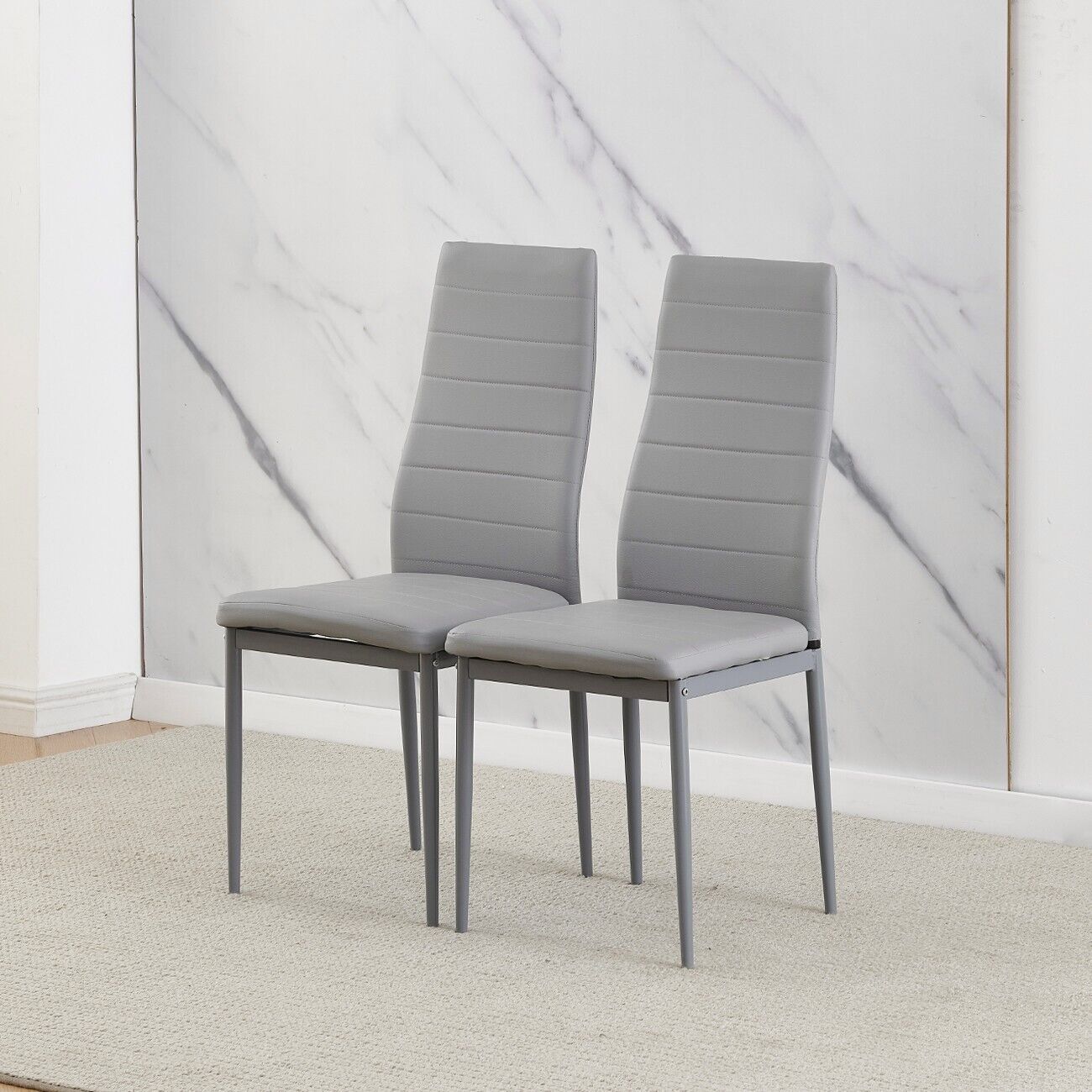 2Pcs Grey Leather Dining Chairs Kitchen Dinning Room Metal Leg Padded Seat Home