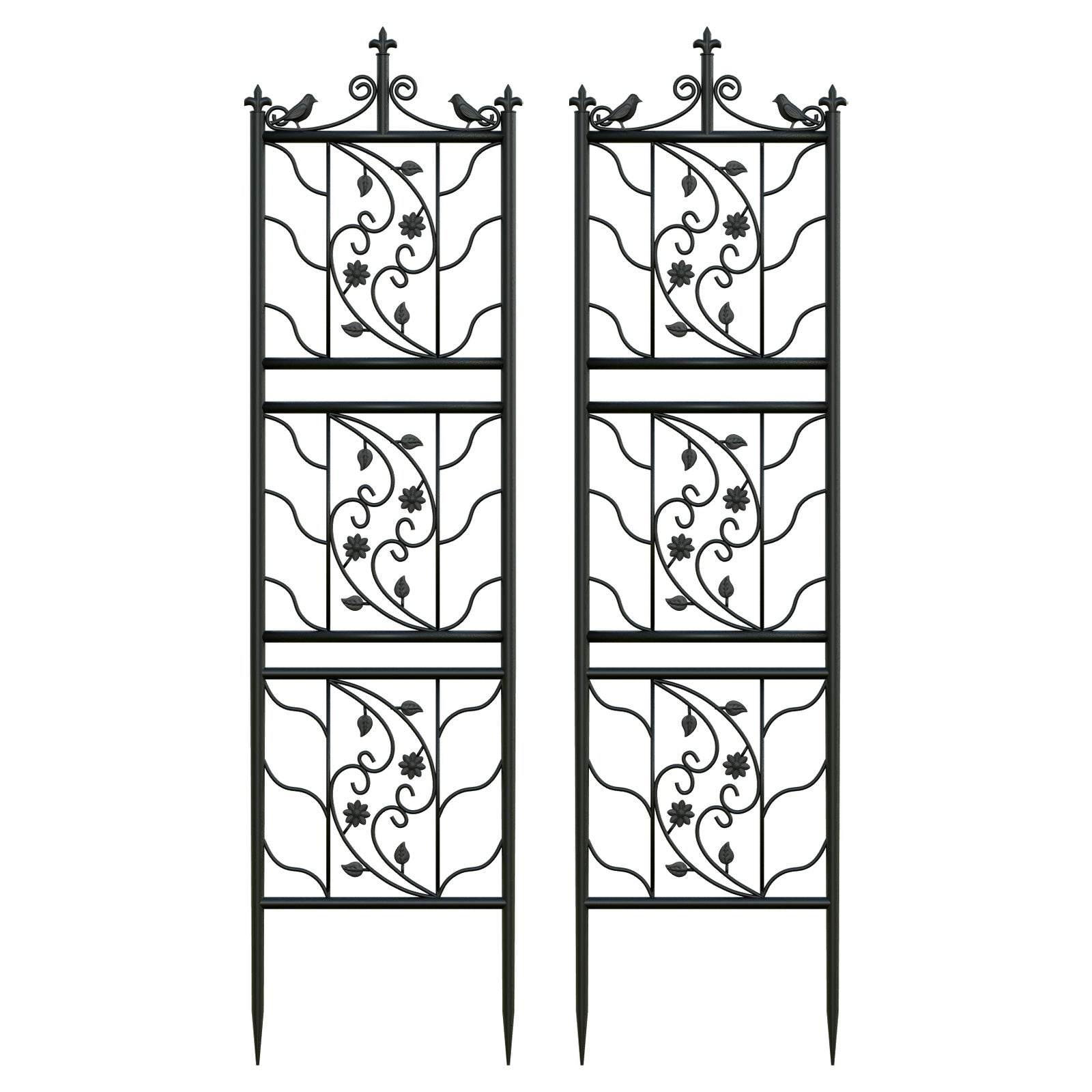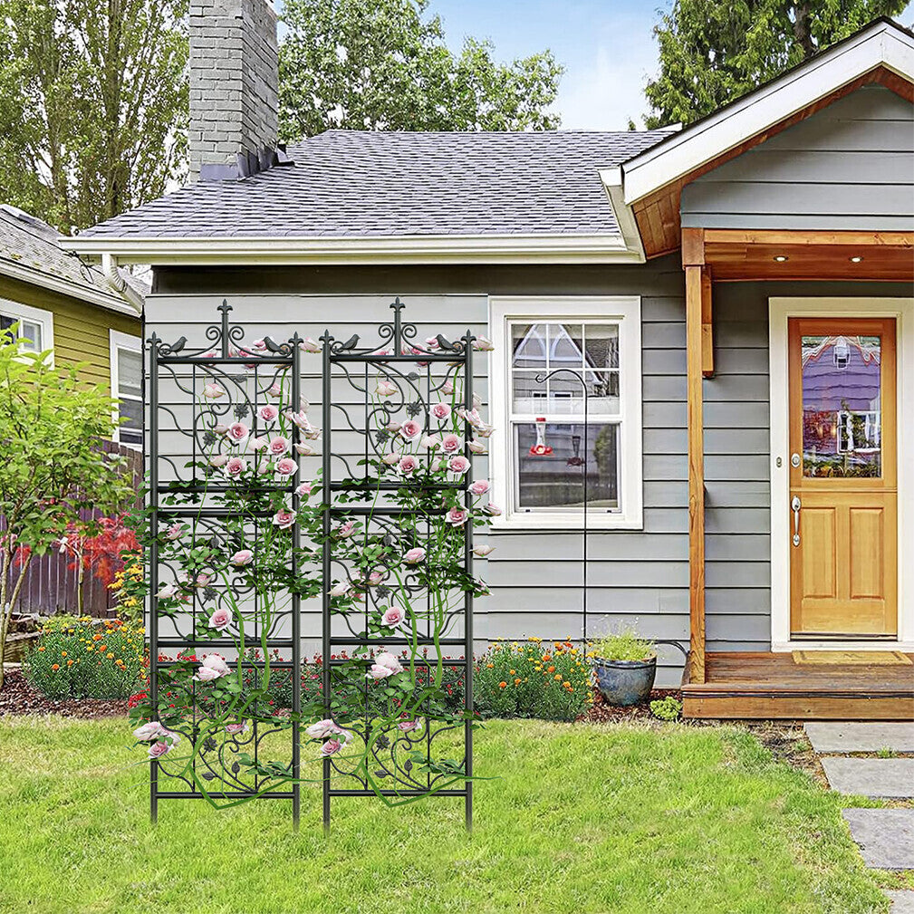 2pcs Heavy Duty Metal Garden Trellis Fence Plant Climbing Stand Bird Leaf Shaped