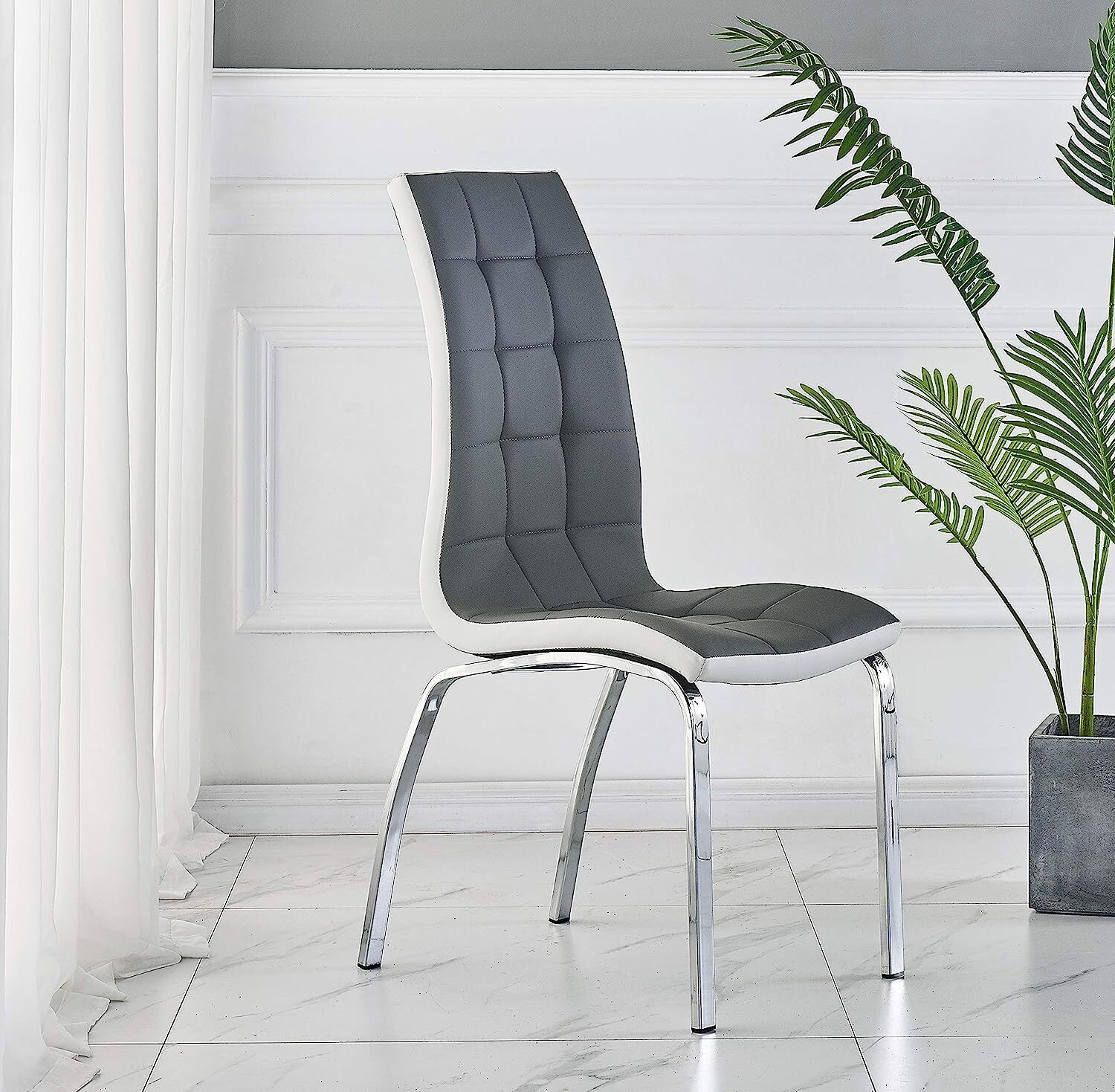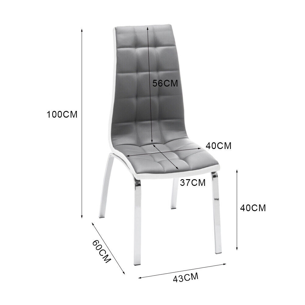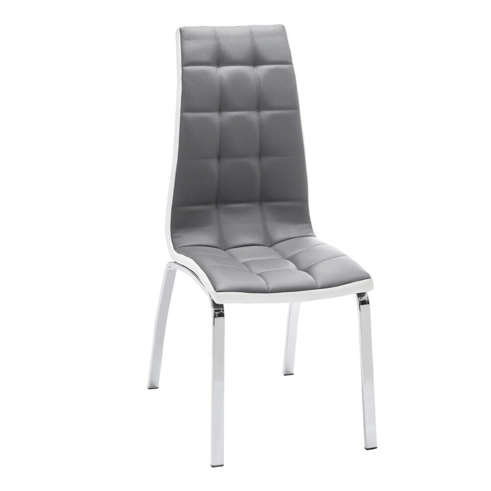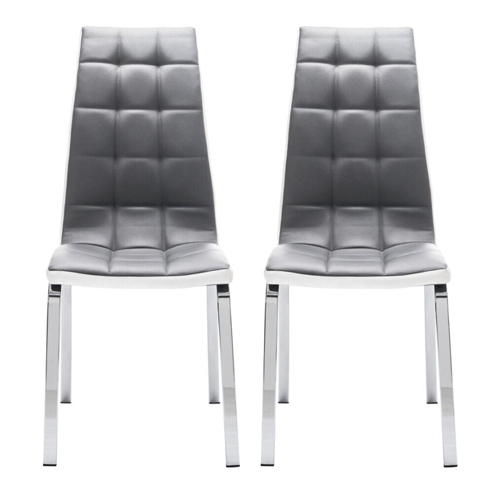 2pcs High Back Dining Chairs PU Leather Padded Seat Chrome Legs Kitchen Office