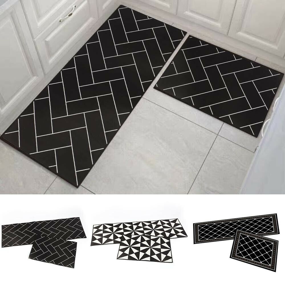 2PCS Home Kitchen Floor Mat Non Slip Anti Fatigue Rug Set Door Decor Washable UK