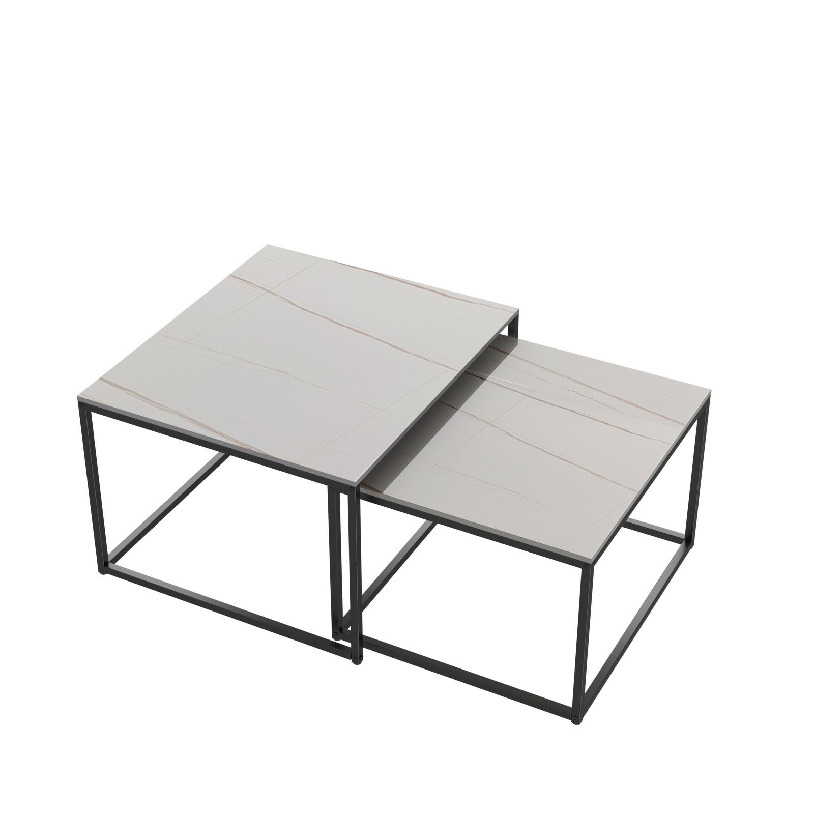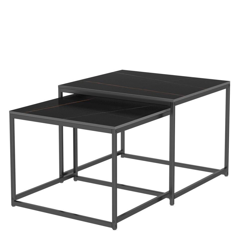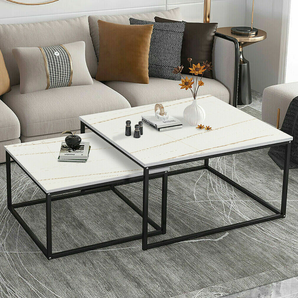 2PCS Marble Nesting Coffee Tables Living Room Accent Tables Square Side Tables