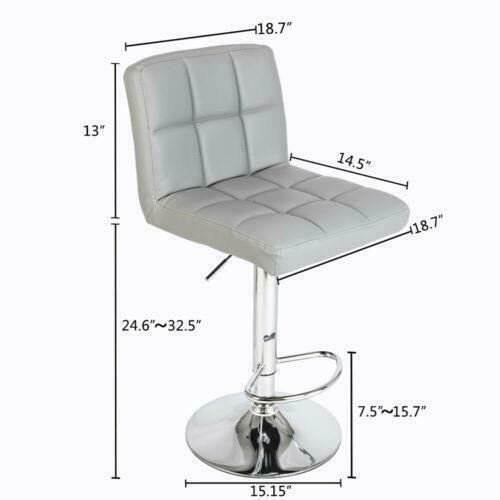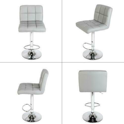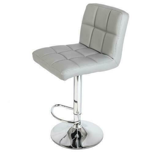 2PCS Modern Bar Stool Leather Kitchen Stool Breakfast Seat Living Room Grey